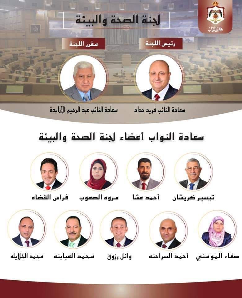 تم اليوم الخميس انتخاب النائب الدكتور فريد حداد رئيسا للجنة الصحة والبيئة بينما فاز بموقع المقرر بالقرعة النائب الدكتور عبد الرحيم المعايعة بعد ان تساوى بالاصوات مع زميله النائب الدكتور تيسير كريشان.