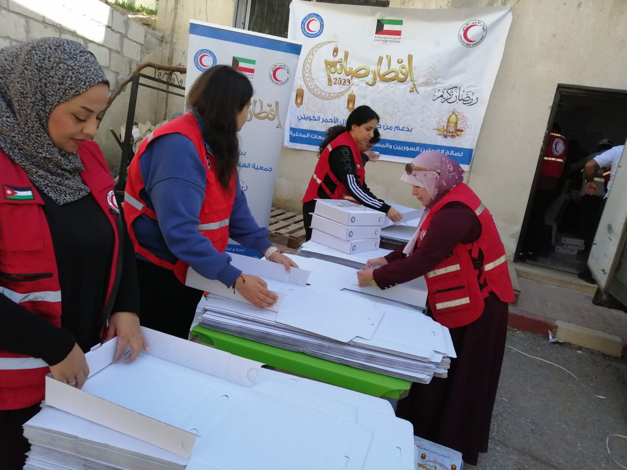 نظم الهلال الاحمر الاردني بالتعاون مع الهلال الاحمر بعجلون وبدعم من جمعية الهلال الاحمر الكويتي افطارا ل 500 سوري واردني في محافظة عجلون .