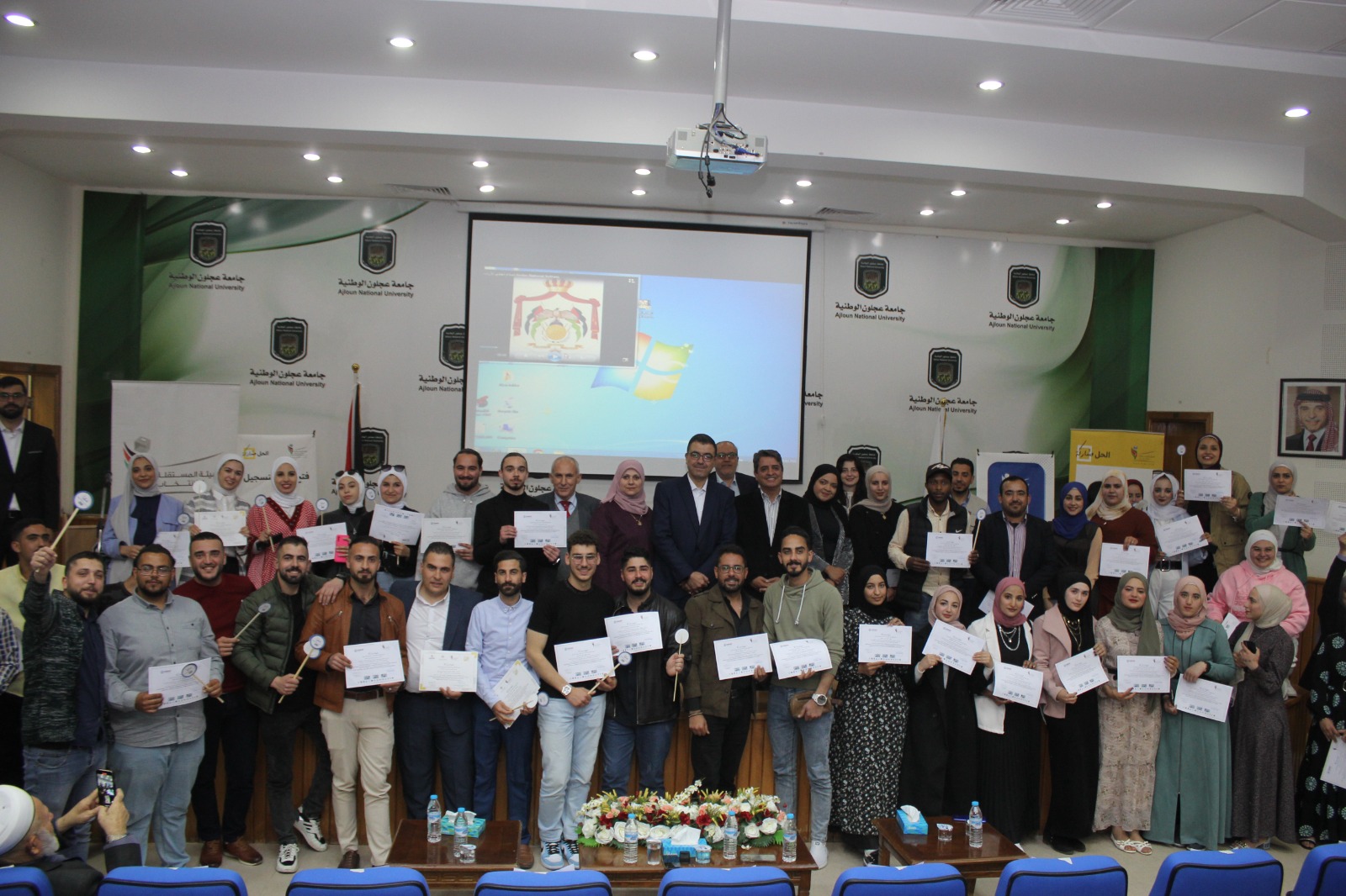 رعى رئيس جامعة عجلون الوطنية الأستاذ الدكتور فراس الهناندة حفل تخريج طلبة جامعة عجلون الوطنية المشاركين في برنامج أنا أشارك بالشراكة مع مؤسسة ولي العهد وبدعم من مشروع الشراكة، بحضور عضو الهيئة المستقلة للانتخاب الدكتور رائد سامي العدوان ، وعميد شؤون الطلبة وعدد من أعضاء الهيئة التدريسية في الجامعة.
