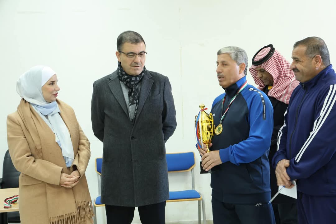 وفي ختام البطولة، قام الأستاذ الدكتور فراس الهناندة بتسليم الجوائز والميداليات للفائزين  والكأس للدكتور عيسى الصمادي ، مؤكداً على أهمية هذه الفعاليات في تعزيز الروابط الاجتماعية بين أعضاء الهيئة التدريسية وتحفيزهم على ممارسة الأنشطة الرياضية لما لها من أثر إيجابي على الصحة البدنية والذهنية.