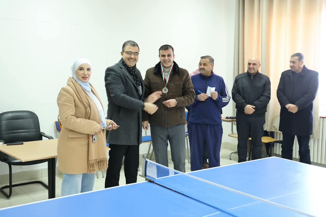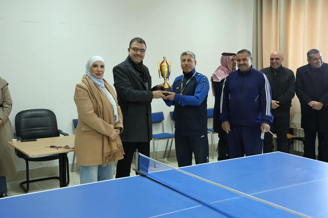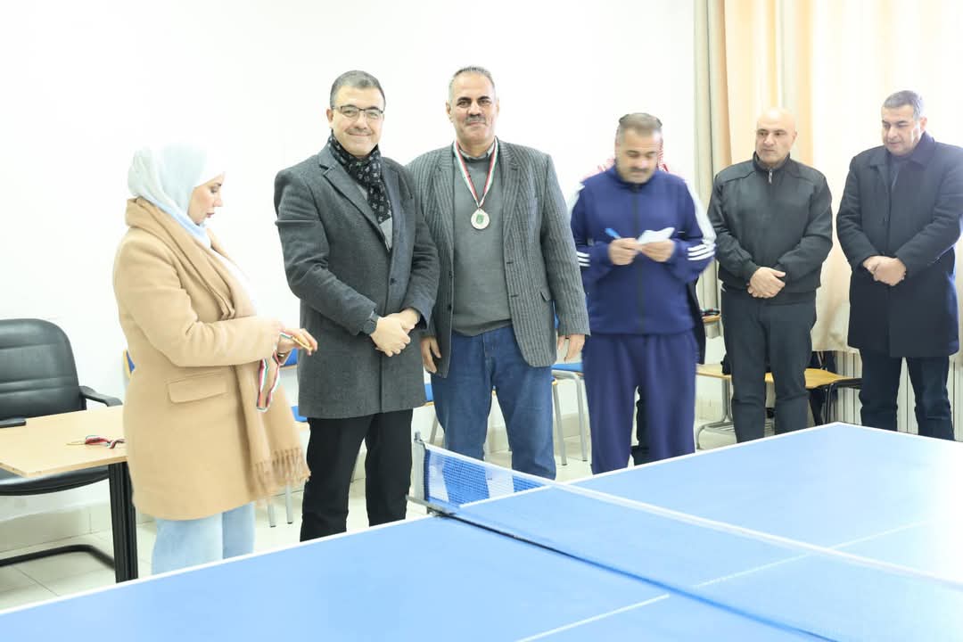 وفي ختام البطولة، قام الأستاذ الدكتور فراس الهناندة بتسليم الجوائز والميداليات للفائزين  والكأس للدكتور عيسى الصمادي ، مؤكداً على أهمية هذه الفعاليات في تعزيز الروابط الاجتماعية بين أعضاء الهيئة التدريسية وتحفيزهم على ممارسة الأنشطة الرياضية لما لها من أثر إيجابي على الصحة البدنية والذهنية.
