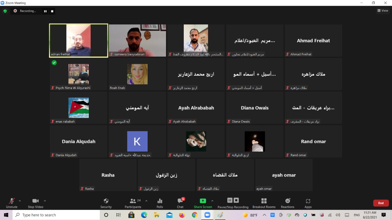 انطلق اليوم الأحد وعبر تطبيق زووم في مديرية شباب عجلون معسكر الأندية والمبادرات المجتمعية،بمشاركة 40 شابا وشابة ضمن الفئة العمرية 12_30 سنة