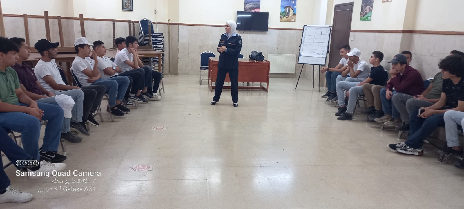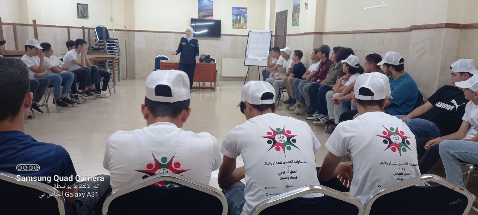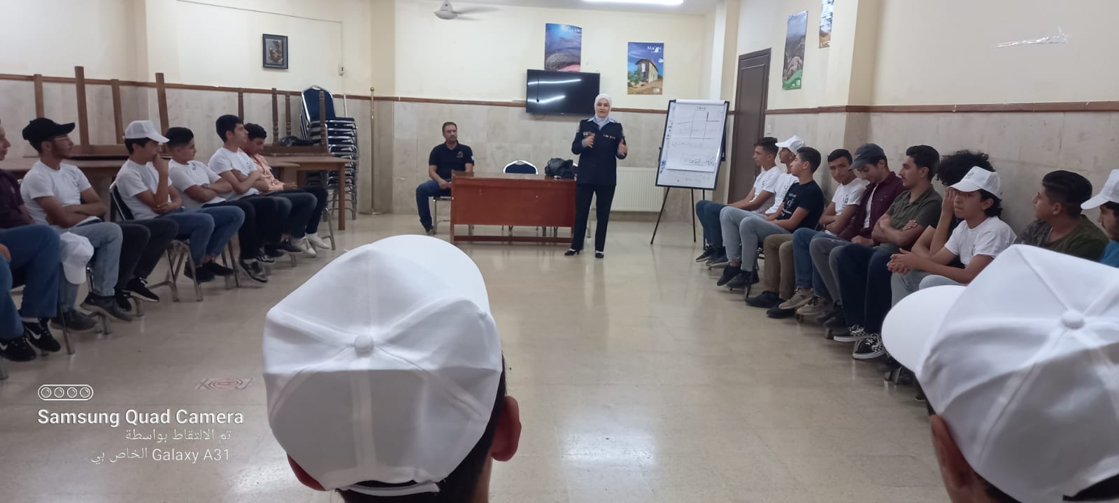 وأشار الملازم اسامه المومني من مديرية الدفاع المدني الى واجبات ومهام الدفاع المدني ، وتمكين الشباب في مجال الإنقاذ والاطفاء وإدارة الأزمات،الإسعافات الاولية (الإسعاف، المسعف)، الجروح، نزيف الأنف، الإغماء من زيادة درجات الحرارة، الحروق، الكسور