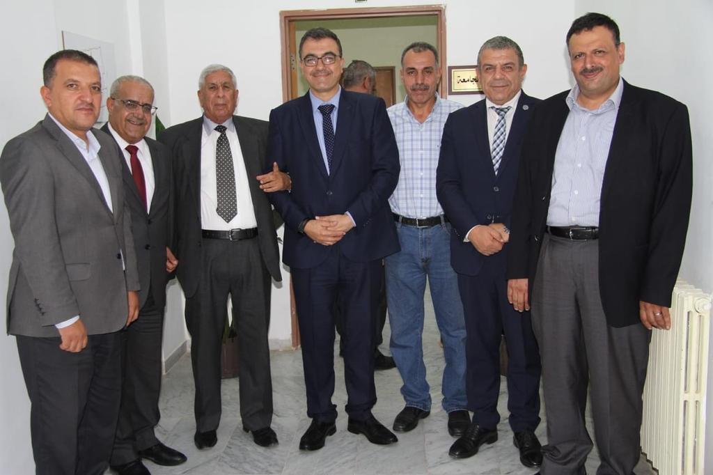 استقبل رئيس جامعة عجلون الوطنية الأستاذ الدكتور فراس الهناندة اليوم الاثنين في مكتبه الممثل الاقليمي لمنظمة الأغذية والزراعة ( الفاو) المهندس نبيل عساف بحضور رئيس الاتحاد العام للمزارعين الاردنيين السيد عوده الرواشدة وعميد كلية الزراعة الدكتور ابراهيم الطاهات ونائب رئيس الاتحاد العام للمزارعين الاردنيين المهندس حسن الصمادي والمدير العام للاتحاد المهندس محمود العوران ورئيس فرع نقابة المهندسين الزراعين في محافظة عجلون المهندس معاوية عناب، وبحث اللقاء سبل التعاون بين الجامعة و( الفاو) في المجالات التي تعنى بالزراعة والامن المائي.