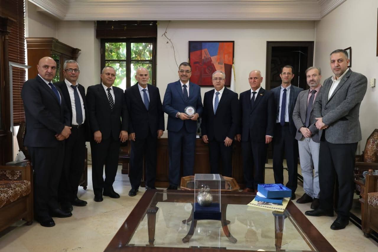 وكان في استقبال الوفد رئيس جامعة دمشق الأستاذ الدكتور مصطفى صائم الدهر، بحضور نواب الرئيس وعمداء الكليات ومديري الدوائر، حيث جرى لقاء رسمي في مكتب رئاسة الجامعة عكس مستوى التقدير المتبادل بين الجانبين، وفتح آفاقًا واسعة للتعاون المشترك.