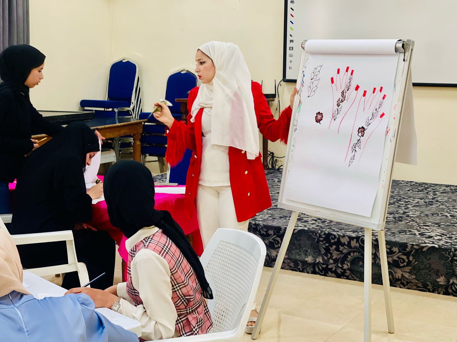 تناولت خلالها المدربة شذا أبو شقرا، محاور تدريبية حول الأدوات المستخدمة في نقش الحناء، تقنيات التصميم، وأساليب الزخرفة، إلى جانب تطبيقات عملية لتطوير المهارات الفنية.
