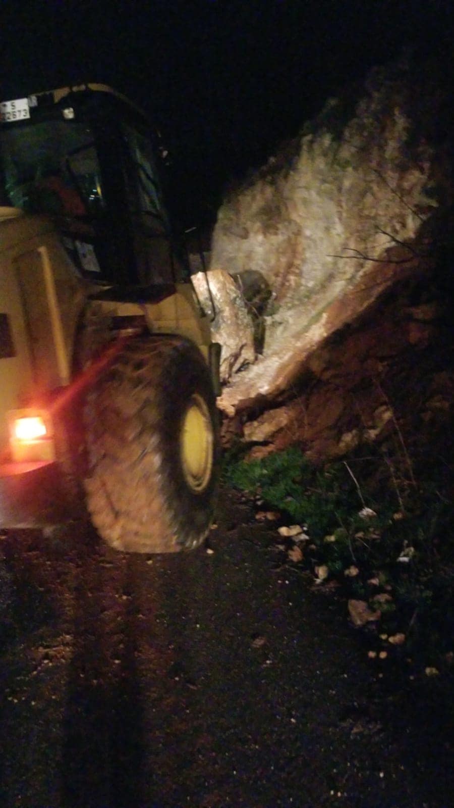 بلدية كفرنجة تتعامل مع إنهيار صخري على جانب طريق حي نمر لواء كفرنجة.