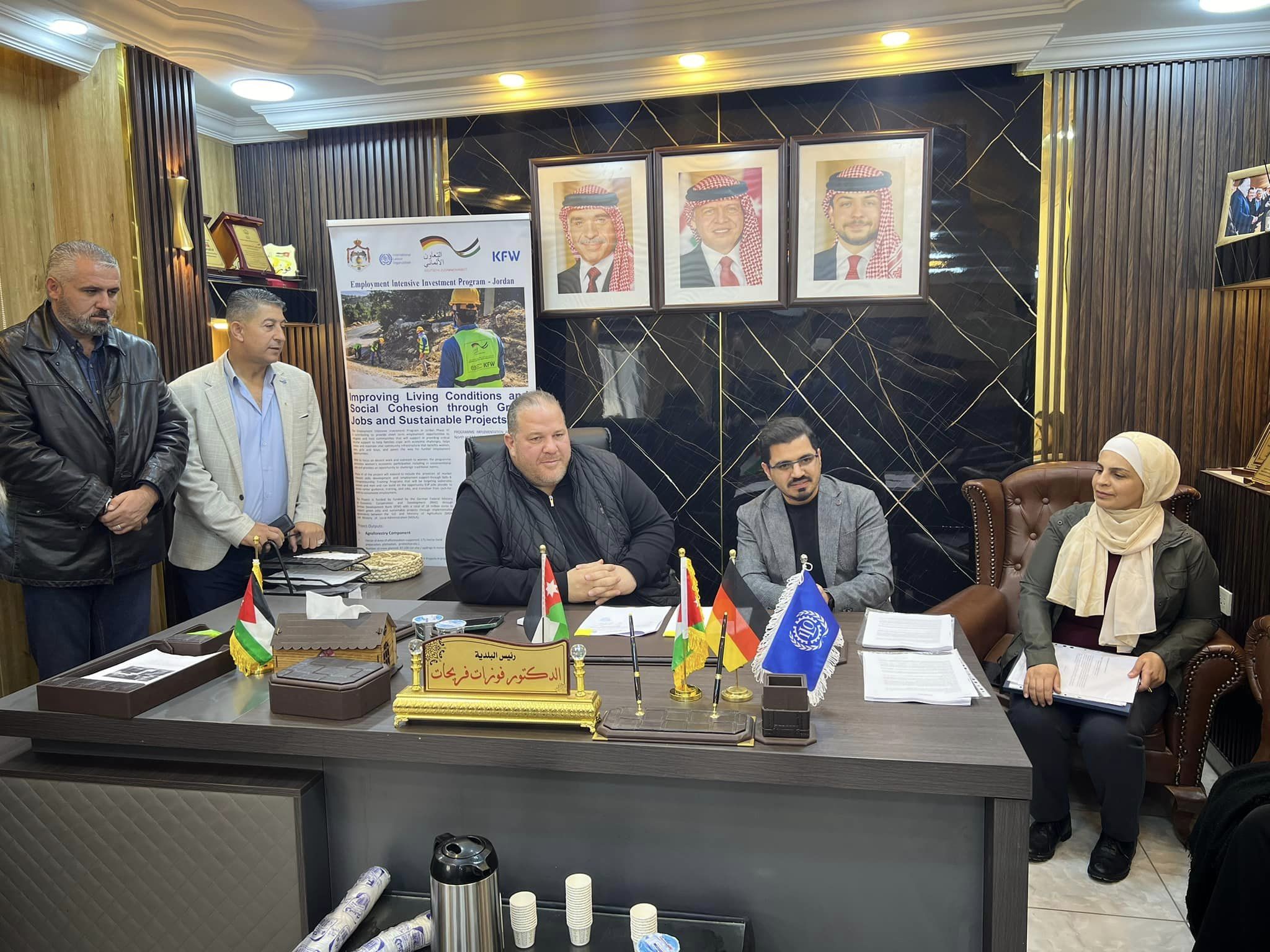 استقبل رئيس بلدية كفرنجة الجديدة المحامي الدكتور فوزات فريحات وأعضاء المجلس البلدي اليوم الخميس ممثلي منظمة العمل الدولية والوفد المرافق لغايات توقيع الاتفاقيات الخاصة بمشروع العمالة المكثفة المرحلة السادسة والممول من بنك التنمية الألماني – المانيا.