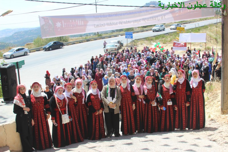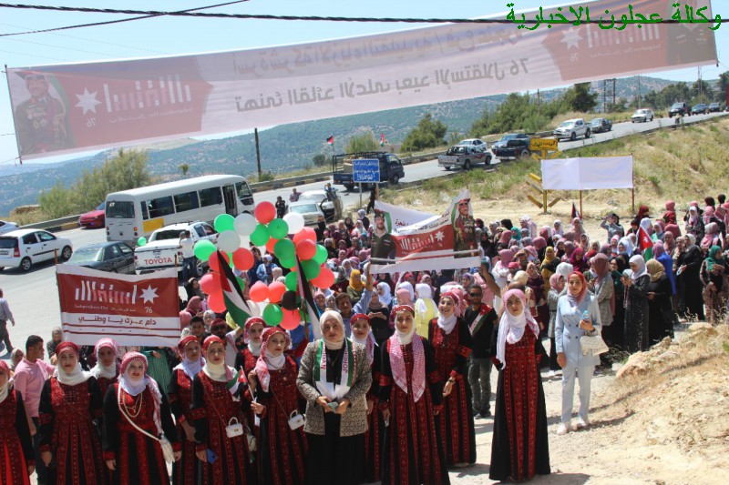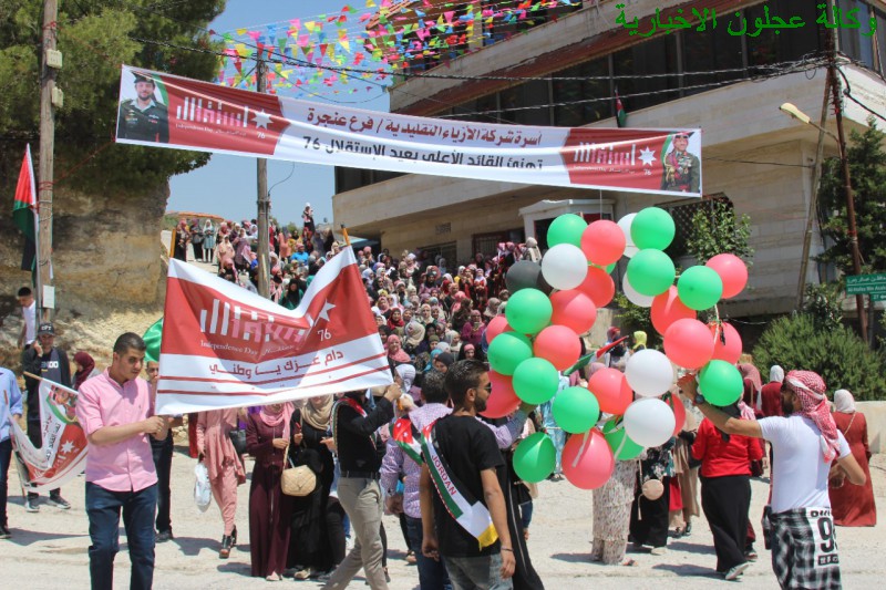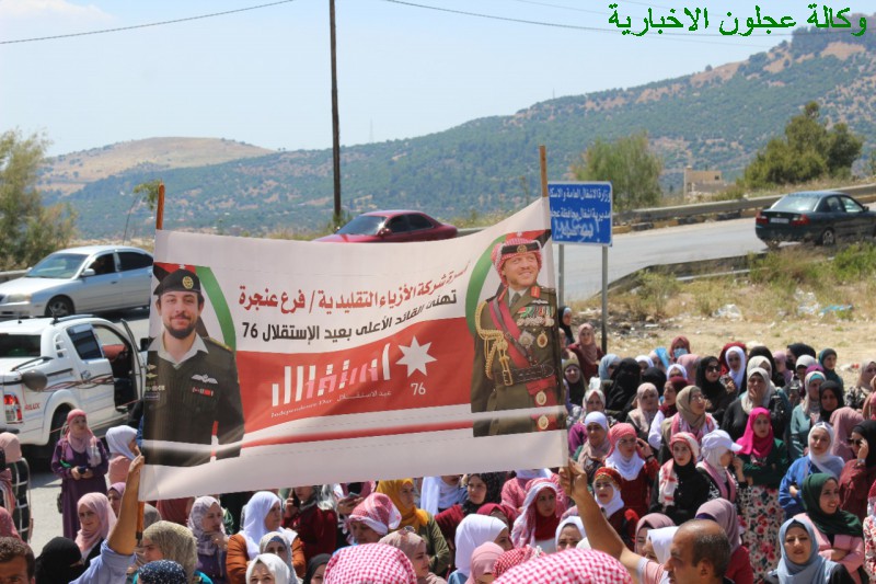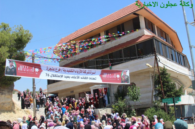 إنطلقت بعد ظهر اليوم مسيرة حاشدة لشركة الأزياء التقليدية فرع عنجرة إحتفالا بعيد الإستقلال ال 76 شارك فيها أكثر من 500 عاملة في المصنع ، حيث إنطلقت المسيرة من أمام المصنع في عنجرة وصولا الى مبنى القاعة الهاشمية في عجلون .