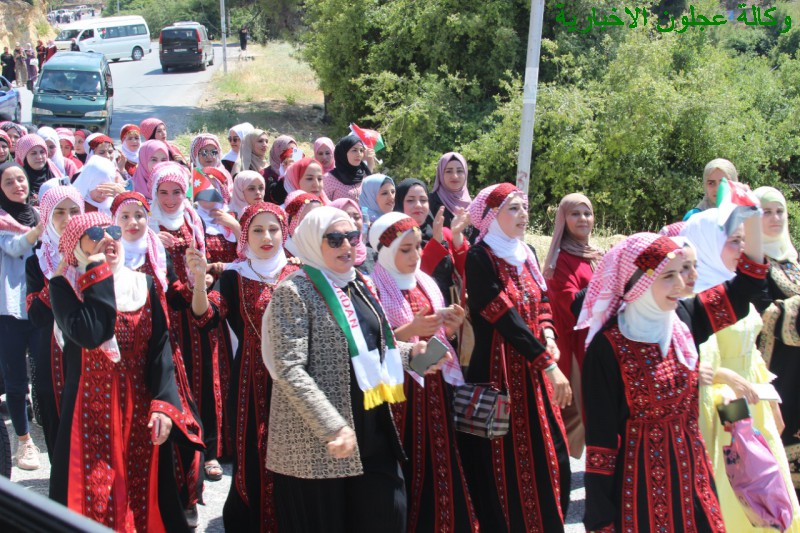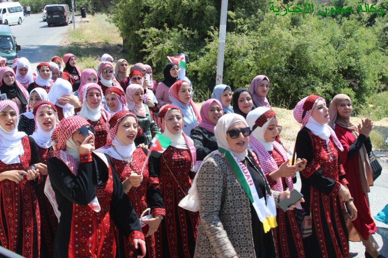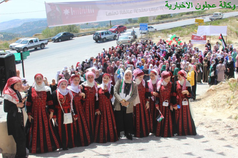 ورفعت المشاركات اللاتي إرتدين الزي الشعبي في المسيرة الأعلام الأردنية وصور جلالة الملك على أنغام الأغاني التي تتغنت بجلالة الملك والوطن .
