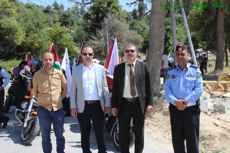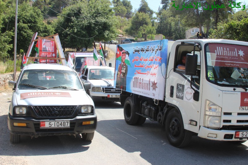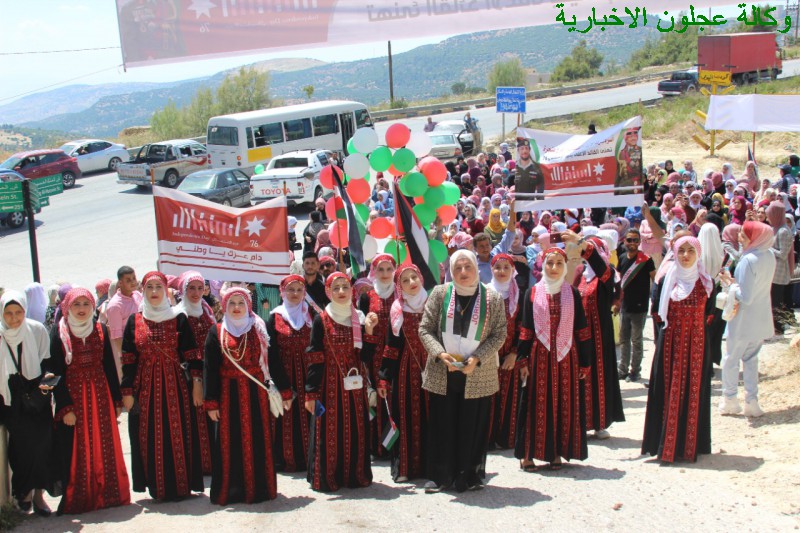الى ذلك وفي نهاية المسيرة التي إنتهت أمام مبنى القاعة الهاشمية في عجلون إستقبل محافظ عجلون الدكتور خالد الجبور ومدراء الدوائر الرسمية والأمنية المشاركات في المسيرة حيث أكد الجبور على ضرورة الإحتفال بهذه المناسبات الوطنية العزيزة على قلوبنا جميعا وتعظيم إنجازات الوطن بقيادة جلالة ملكنا المفدى حفظه الله ورعاه .