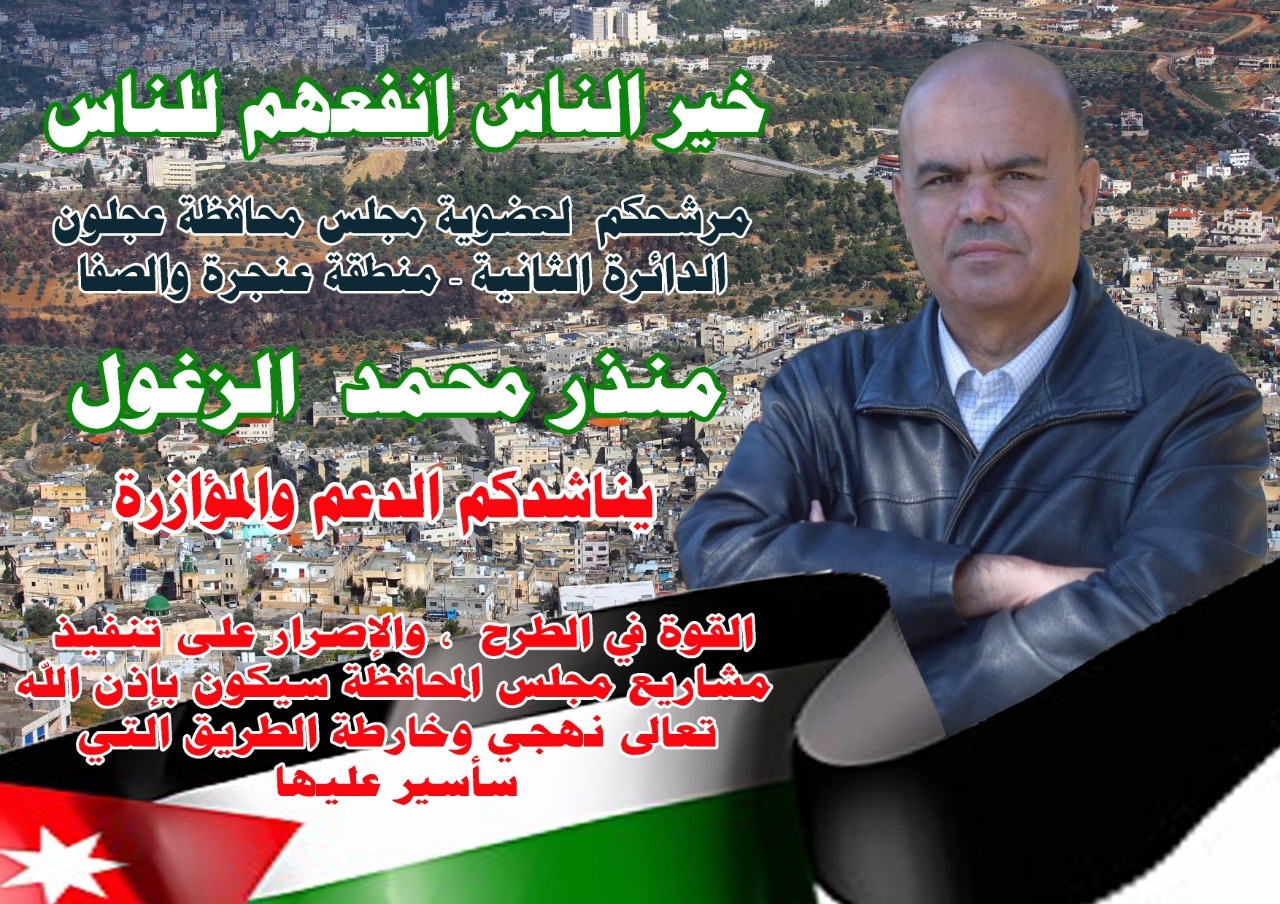 اتمنى لو لي الف صوت وامنحها للأستاذ منذر الزغول اومنذر عجلون لأنه بحق إبن بأر لعجلون وأهلها ‘ لقد عرفتك عجلون منذ زمن طويل وعرفت غيرتك ومحبتك لعجلون يا أهلنا في عنجره والصفا ندعوكم بأن لا تخذلوا عجلون نعم منذر الزغول يستحق دعمكم