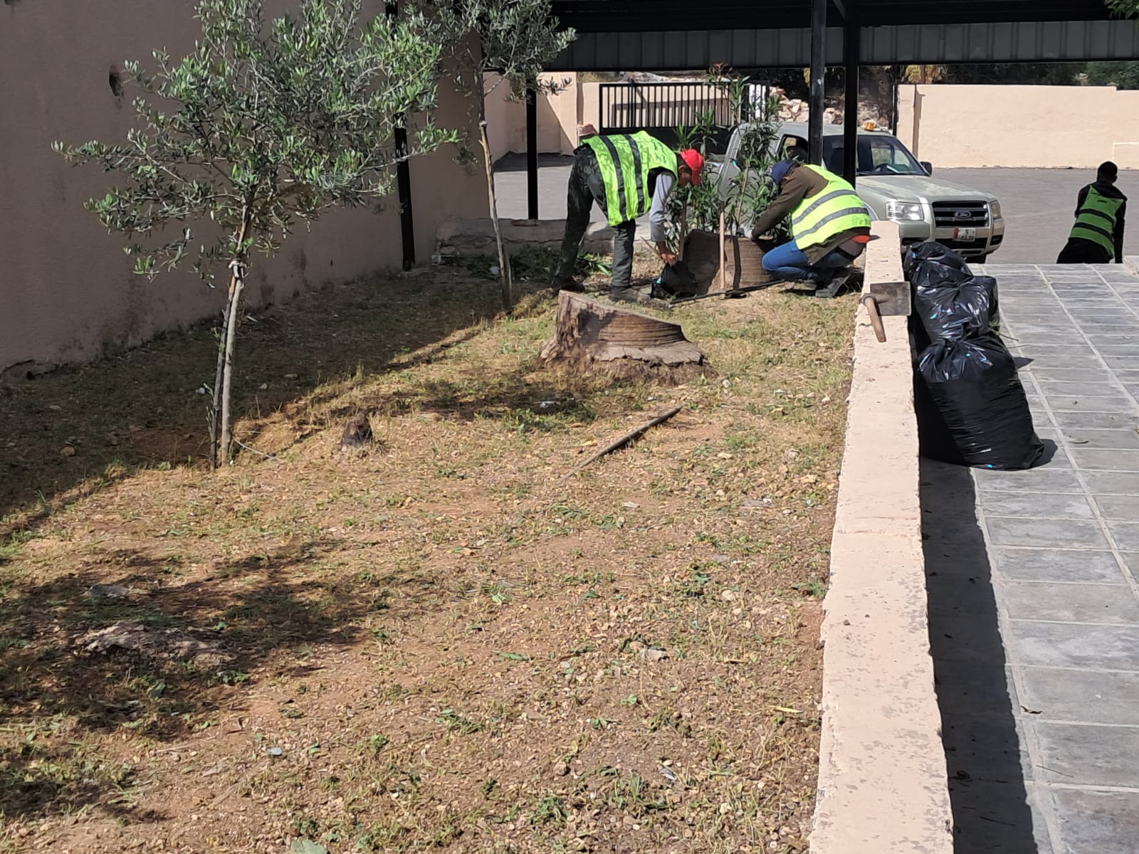 تعشيب وتنظيف حديقة مدرسة عجلون الأساسية المختلطة من قبل مجلس المشتركة .