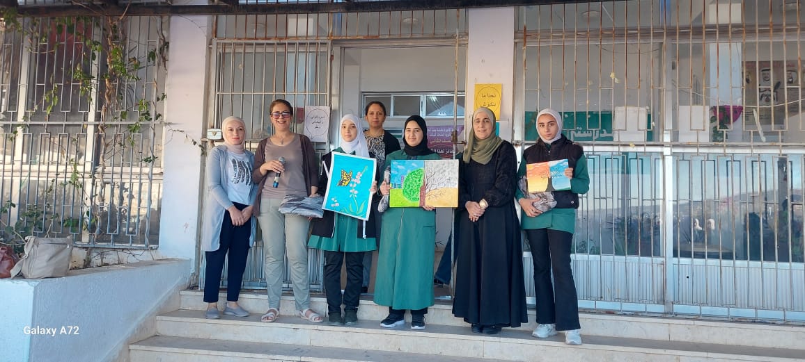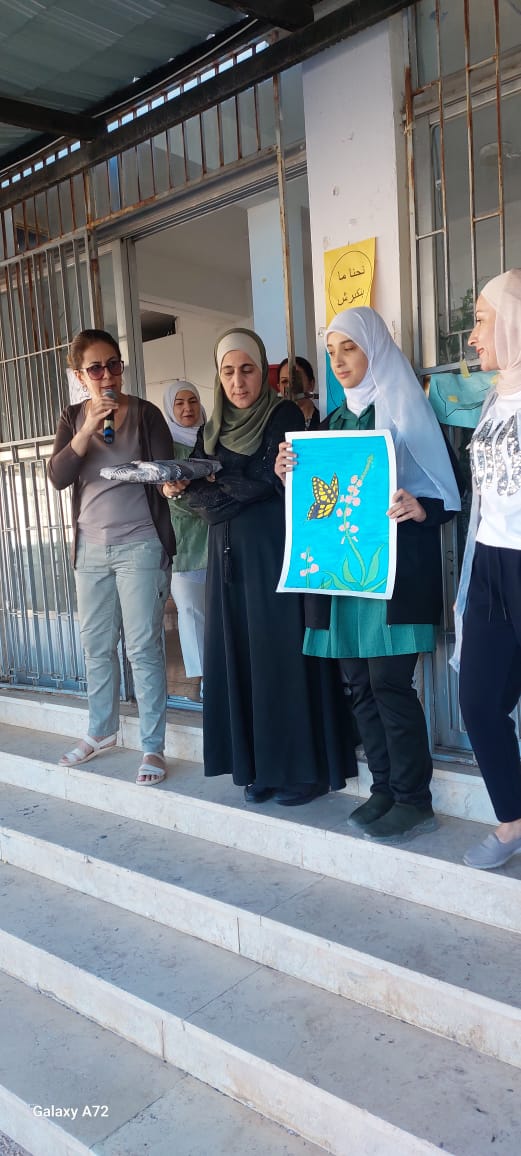 كرمت مديرة مدرسة الاميرة عائشة بنت الحسين المهنية الشاملة ايمان الصمادي خلال الطابور الصباحي الطالبات الفائزات بمسابقة الرسم بمناسبة يوم البيئة العربي والحياة البرية ويوم الاوزون العالمي