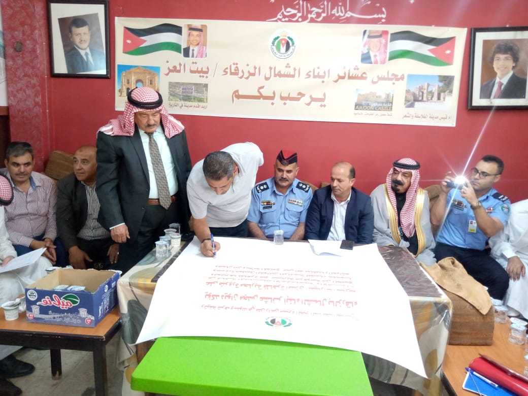 توشيح وثيقة شرف لا للعيارات النارية بتواقيع وجهاء وسيدات الزرقاء
