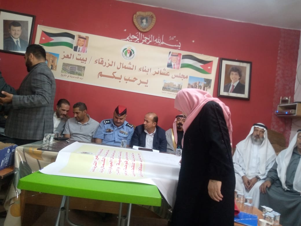 توشيح وثيقة شرف لا للعيارات النارية بتواقيع وجهاء وسيدات الزرقاء