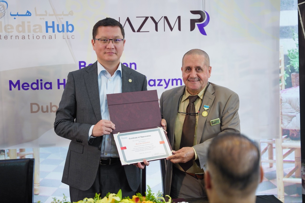 وقعت الوكالتين الإعلاميتين “ناظم للعلاقات الإعلامية” الكازاخية، وميديا هب إنترناشيونال الإماراتية، مذكرة تفاهم استراتيجية طويلة المدى لتعزيز الخدمات الإعلامية، بحضورٍ سعادة / راوان جومابيك، قنصل جمهورية كازاخستان لدى دولة الإمارات العربية المتحدة.