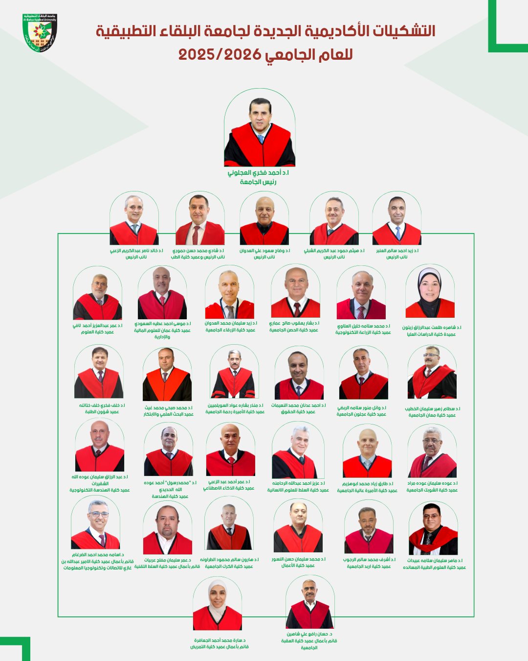 جامعة البلقاء التطبيقية تعلن تشكيلات أكاديمية جديدة للعام الجامعي 2025/2026