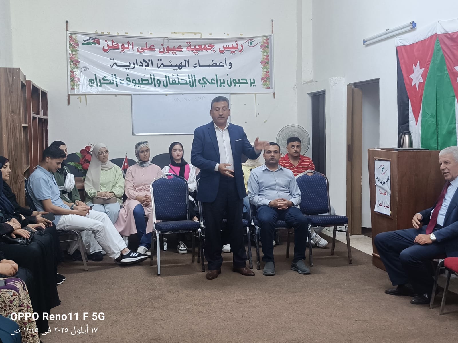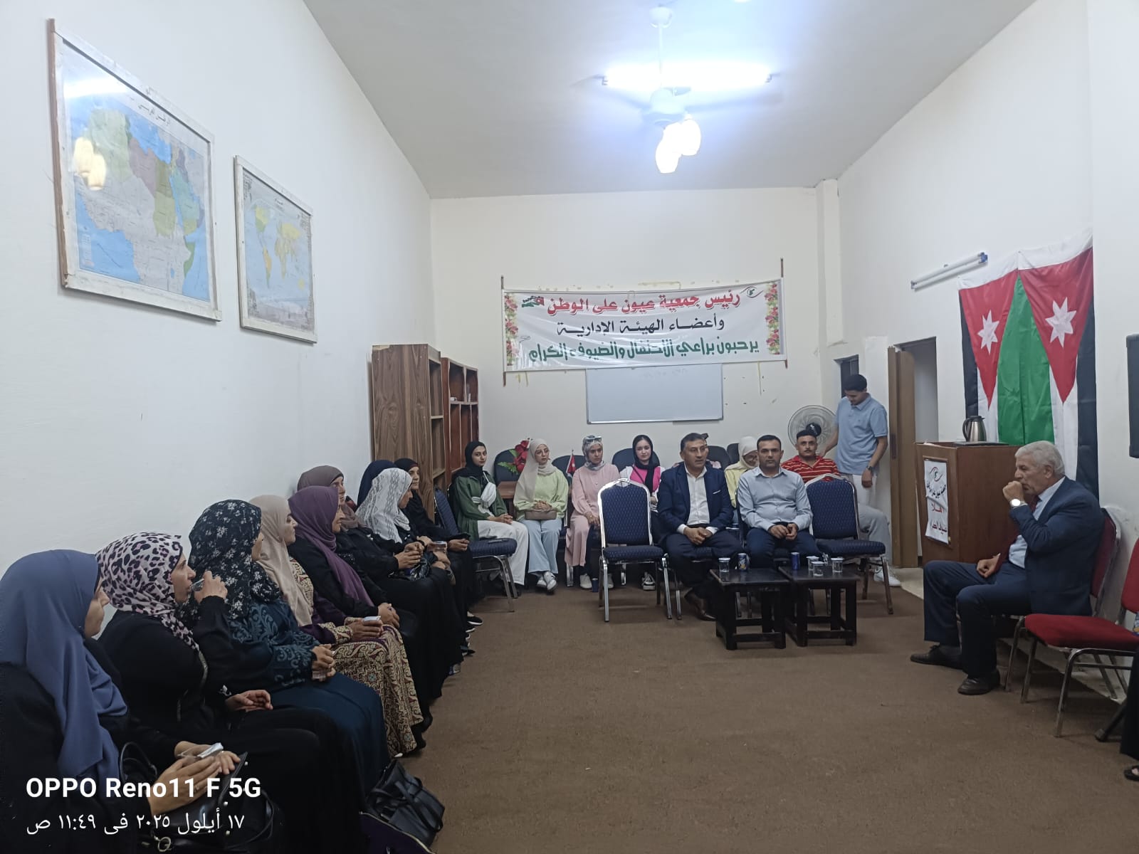 وفي بداية اللقاء رحب رئيس جمعية عيون على الوطن الدكتور منير الشويطر بالدكتور التلاحمة والسميرات والوفد المرافق، معرباً عن شكره على هذه المبادرة الطيبة التي اطلقتها الجامعة ، بدورهن اعرب عدد من سيدات المجتمع المحلى و المؤازرات للجمعية عن شكرهن لجامعة اليرموك ممثلة بعمادة شؤون الطلبة – قسم المعسكرات والجوالة، والقائمين على المبادرة، والتي عبرت عن مدى التعاون ما بين الجامعة والمجتمع المحلي.