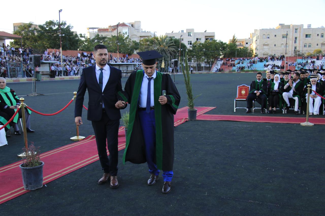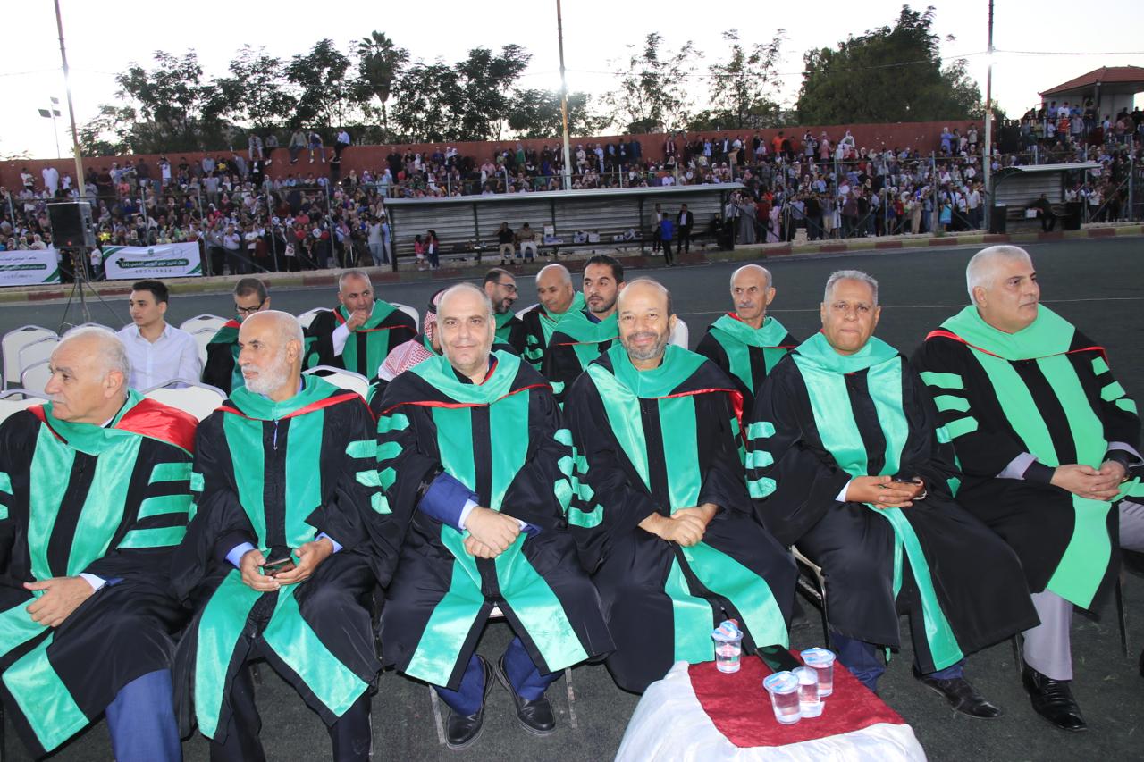 وفي نهاية حفل التخريج الذي أقيم في الملعب البلدي في اربد قام الدكتور الصمادي ورئيس الجامعة الهنانده بتسليم الطلبة شهادتهم بحضورعمداء كليات الجامعة واعضاء الهيئة التدريسية في الجامعة وأولياء أمور الطلبة.