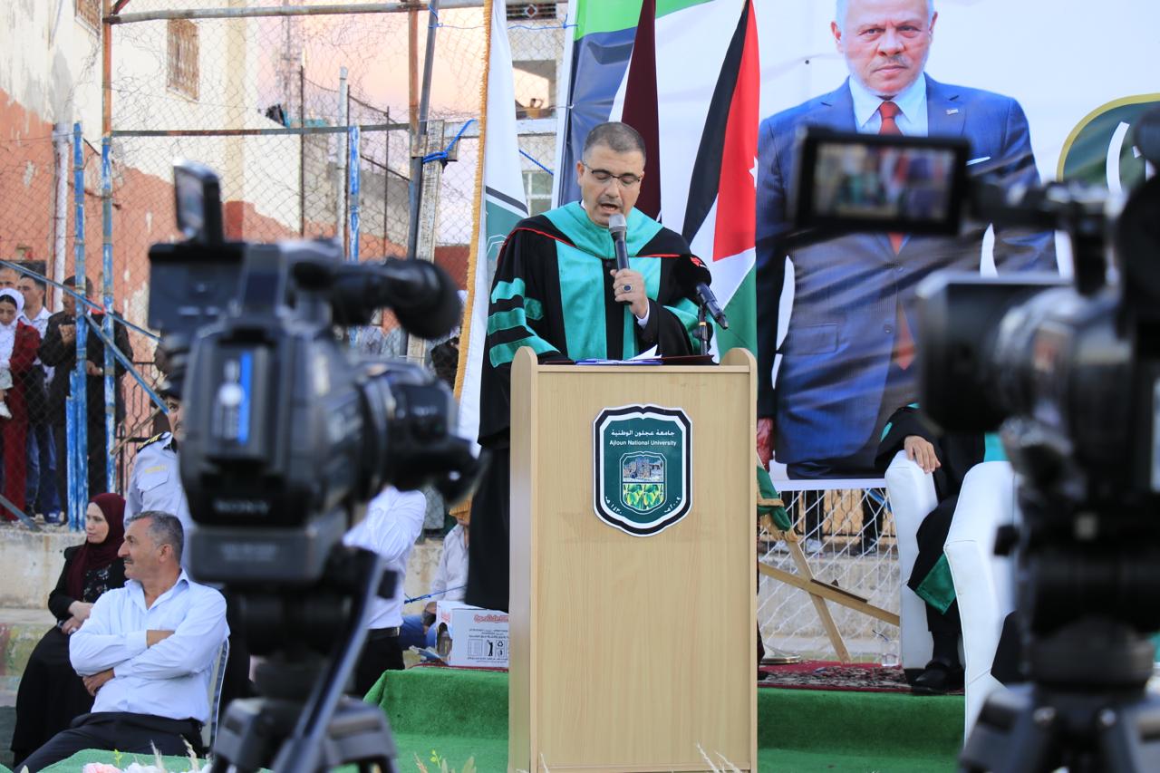 وفي بداية الحفل الذي أدارته مديرة دائرة الاتصال المؤسسي والعلاقات الدولية في أماني الطوالبة، ألقى رئيس الجامعة الأستاذ الدكتور فراس الهنانده كلمة استعرض فيها انجازات جلالة الملك عبدالله الثاني المعظم في مجال التعليم ودعم الشباب كما قدم فيها التهنئة والمباركة والنصح والارشاد للطلبة الخريجين متمنيا لهم التوفيق والنجاح في حياتهم القادمة.
