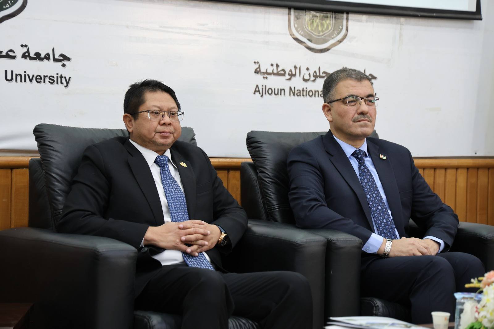 وافتتحت الجلسة بالسلام الملكي الأردني، تلاه تلاوة آيات عطرة من القرآن الكريم، ثم كلمة لرئيس جمعية خريجي الجامعات الماليزية في الأردن، الأستاذ الدكتور محمد أبو شقير، الذي أشاد بالمستوى الأكاديمي المتقدم لجامعة عجلون الوطنية، وبجهودها في تعزيز جسور التعاون العلمي والمعرفي مع الجامعات والمؤسسات الآسيوية.