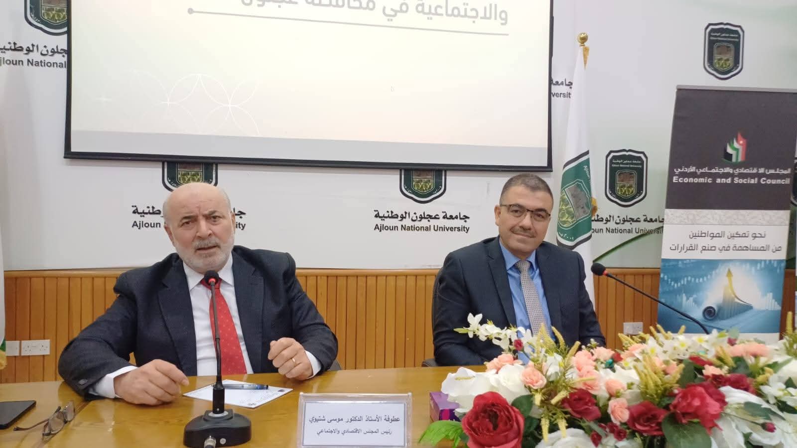 كما ألقى رئيس المجلس الاقتصادي والاجتماعي الأستاذ الدكتور موسى شتيوي كلمة أشار فيها إلى أهمية الحوار المفتوح مع أبناء المجتمع المحلي، مؤكدًا أن محافظة عجلون بما تمتلكه من إمكانات بشرية وطبيعية تمثل نموذجًا مهمًا للتنمية المستدامة، مشيدًا بالتعاون الفاعل مع جامعة عجلون الوطنية، والدور الريادي الذي تقوم به كمؤسسة أكاديمية تنموية.