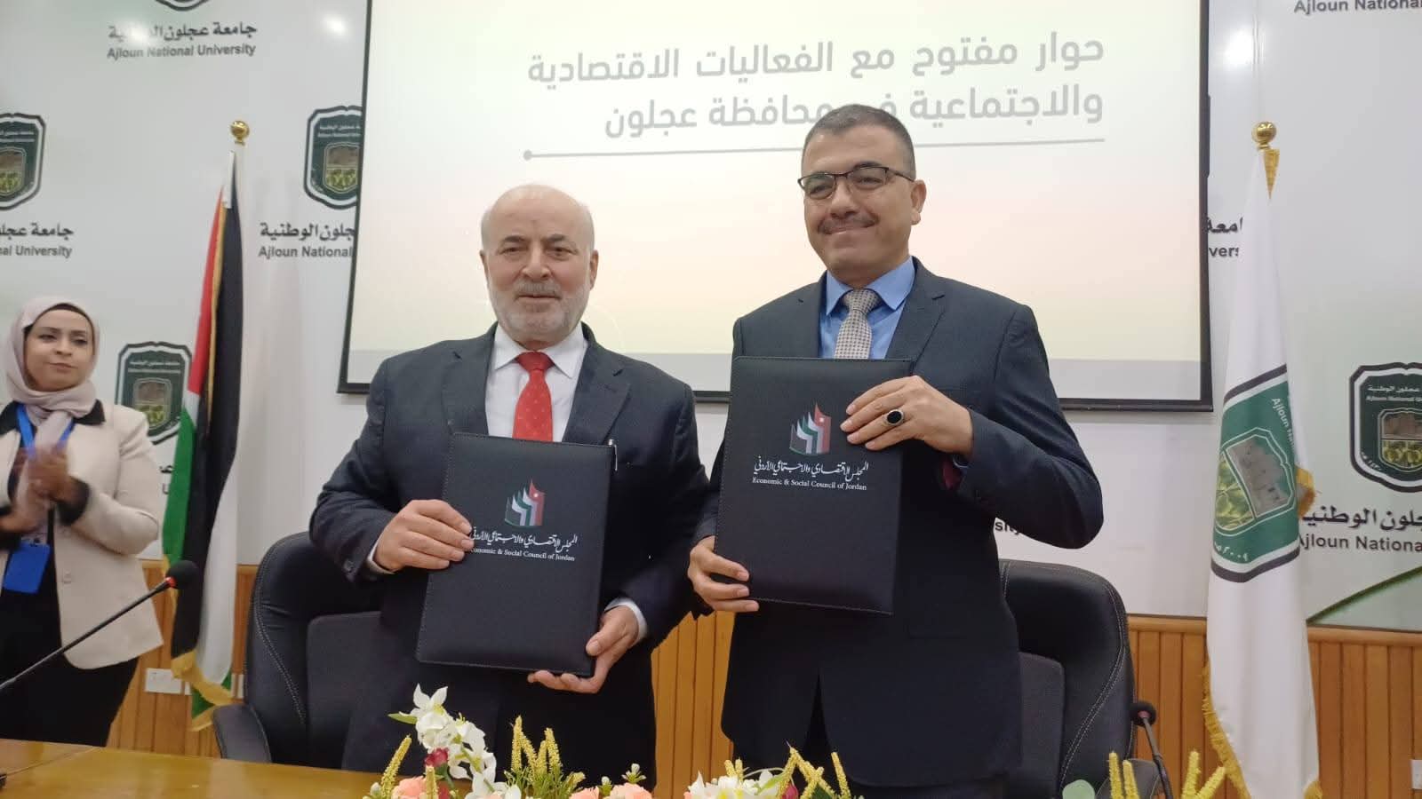 وفي ختام اللقاء، تم توقيع مذكرة تفاهم بين جامعة عجلون الوطنية والمجلس الاقتصادي والاجتماعي لتعزيز أطر التعاون في مجالات البحث العلمي وإعداد الدراسات والأنشطة المشتركة، وتلا ذلك تبادل الدروع التذكارية بين الطرفين، تقديرًا لهذا التعاون البنّاء الذي يعكس التشاركية بين المؤسسات الوطنية والجامعات الأردنية.