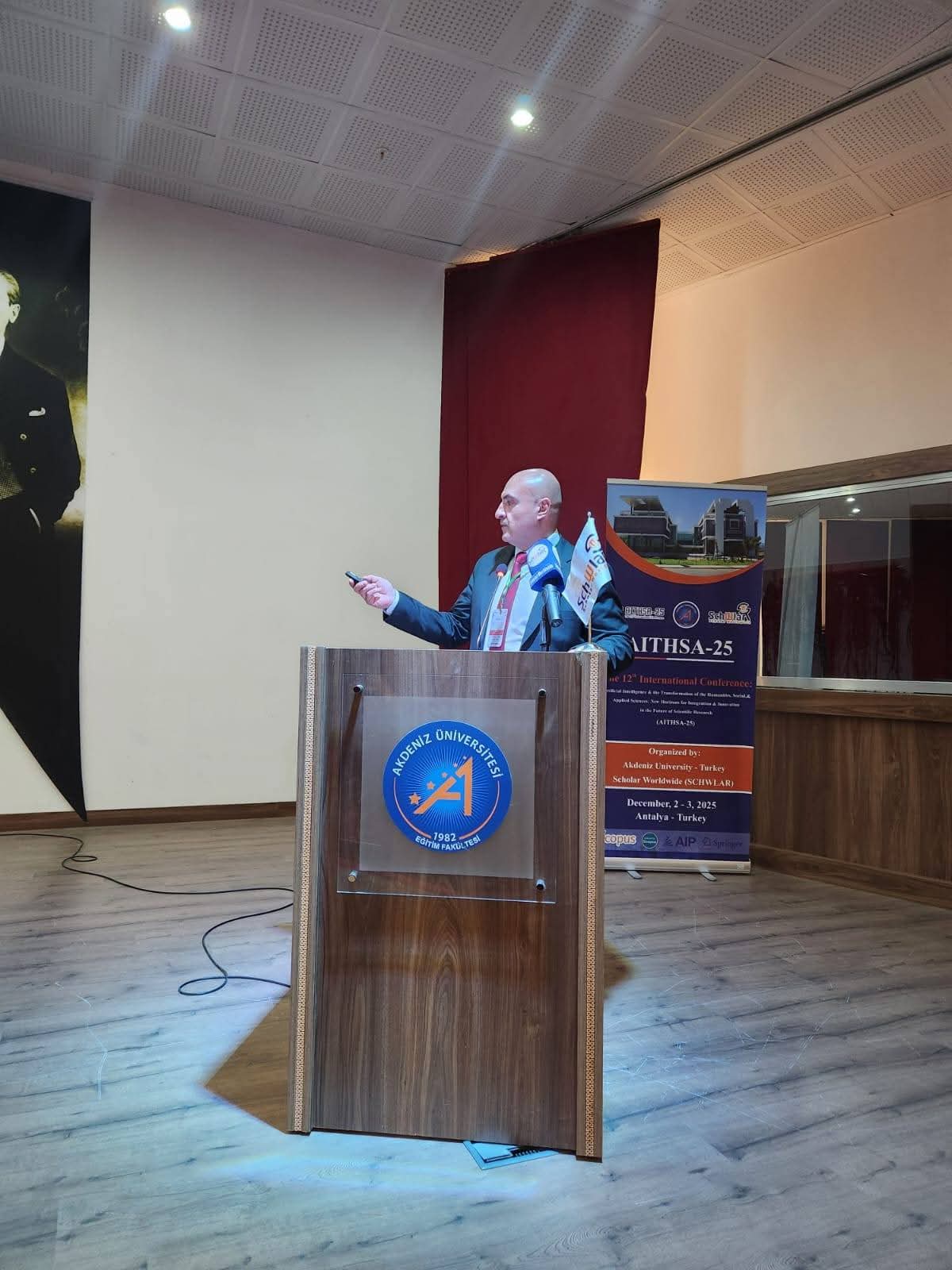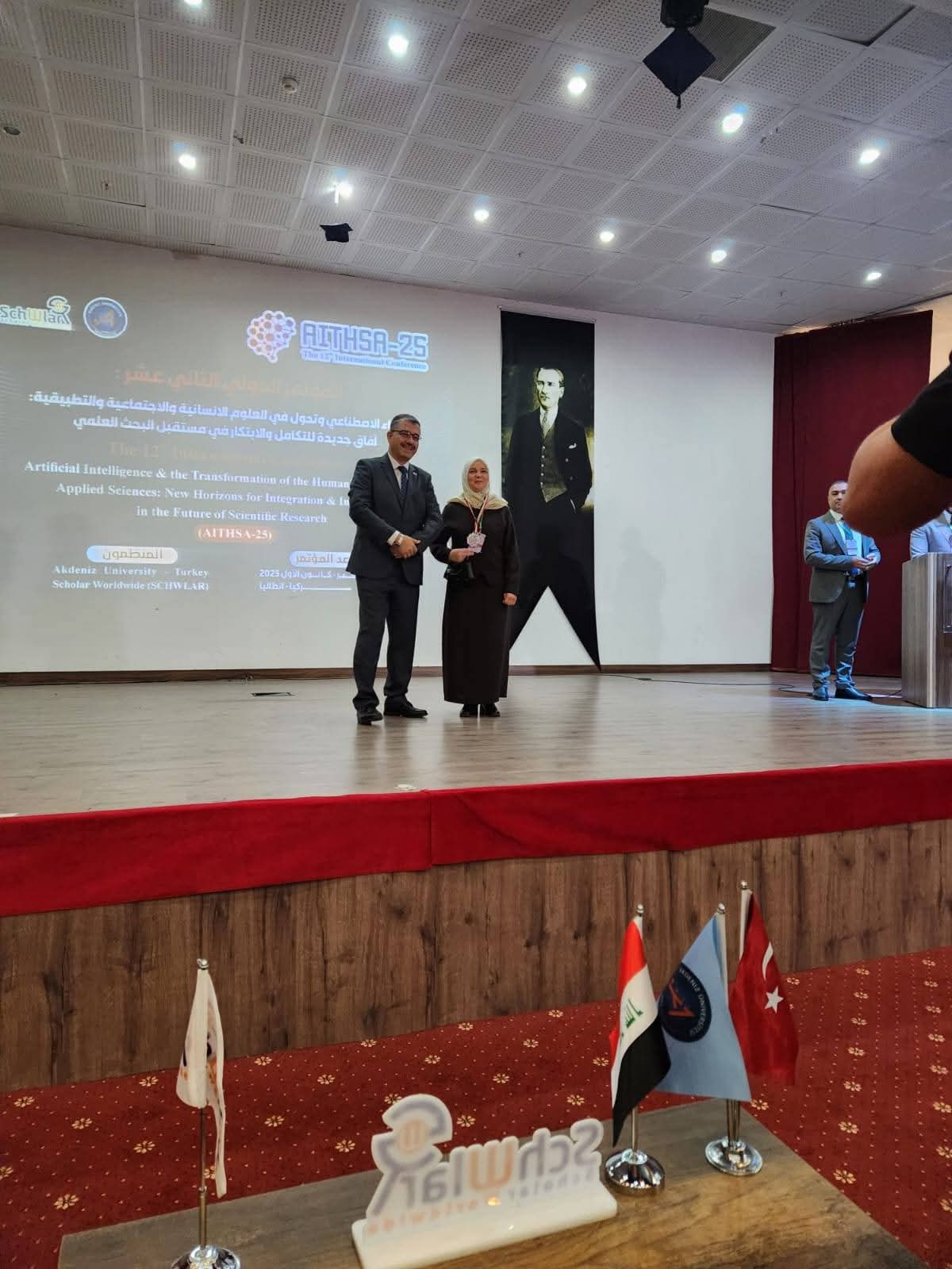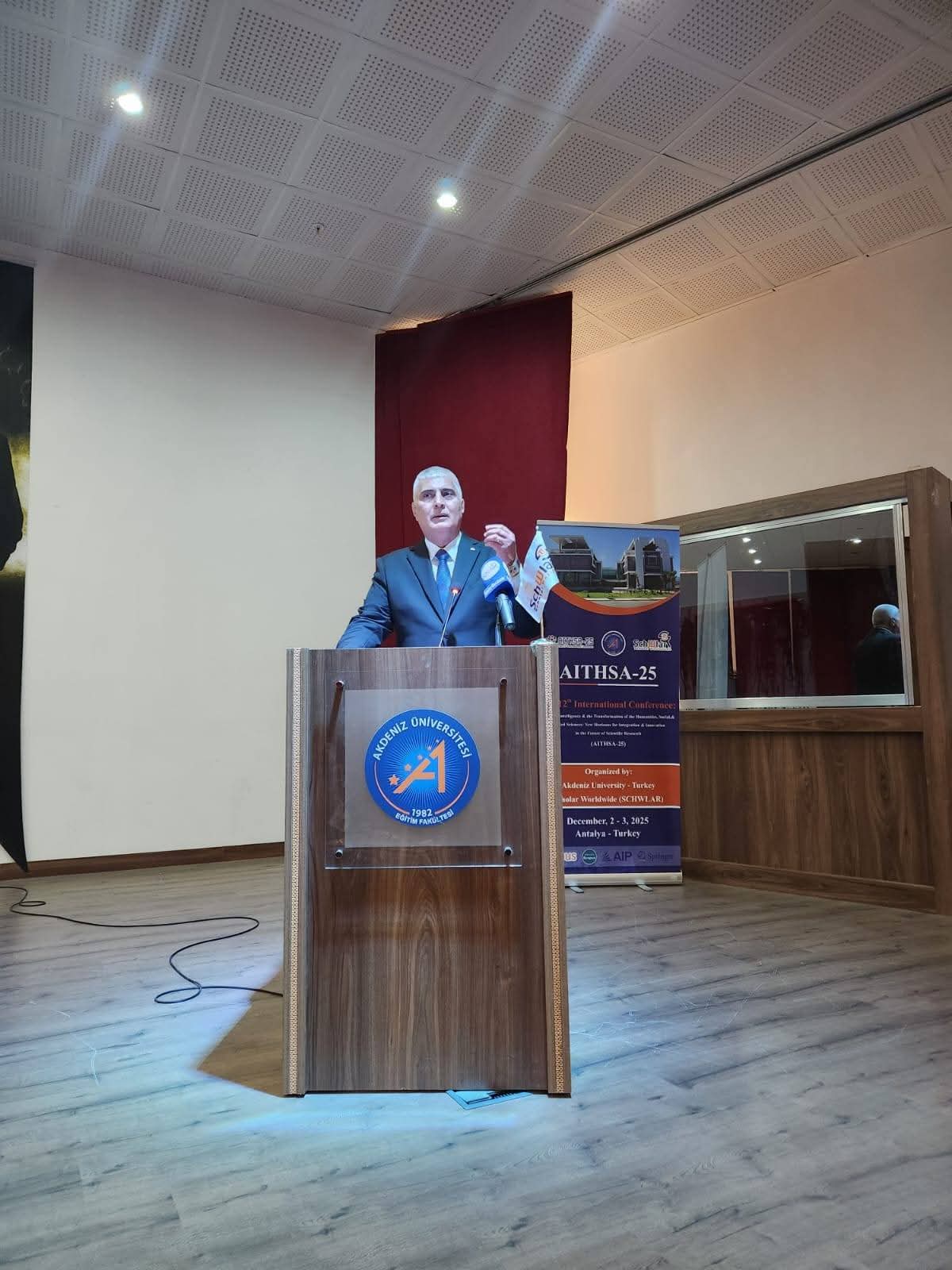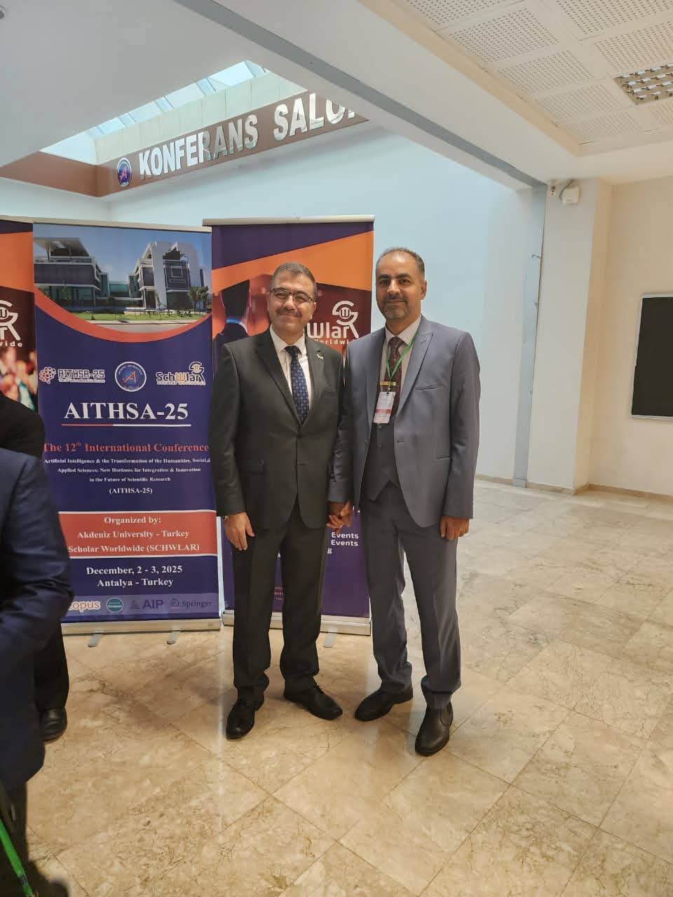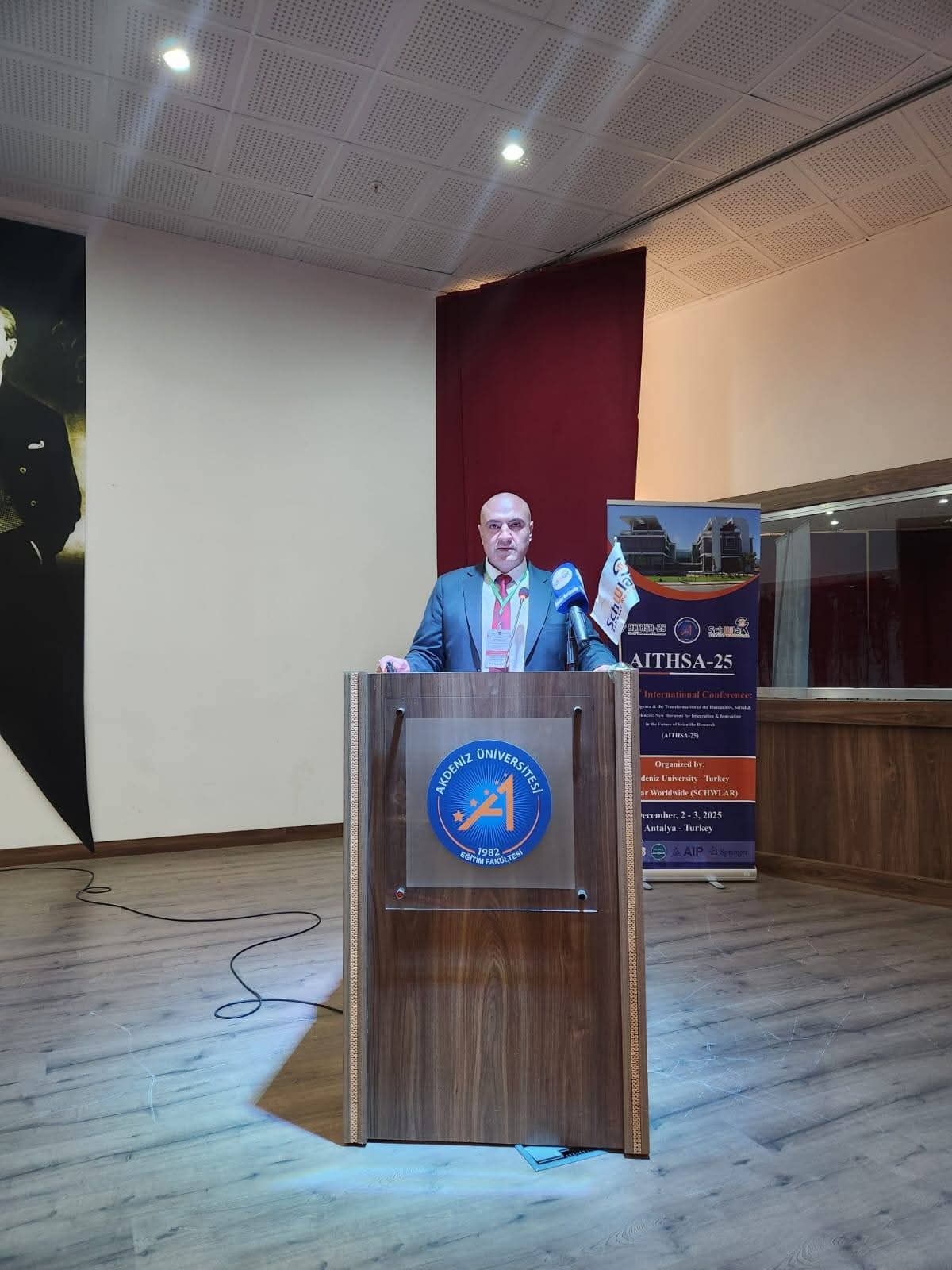 “الذكاء الاصطناعي والتحول في العلوم الإنسانية والاجتماعية والتطبيقية: آفاق جديدة للتكامل والابتكار في مستقبل البحث العلمي”، والذي انعقد في مدينة أنطاليا – تركيا خلال الفترة من 2 – 3 كانون الأول 2025، بمشاركة واسعة من الباحثين والمتخصصين والخبراء من مختلف الجامعات والمؤسسات العلمية الدولية.