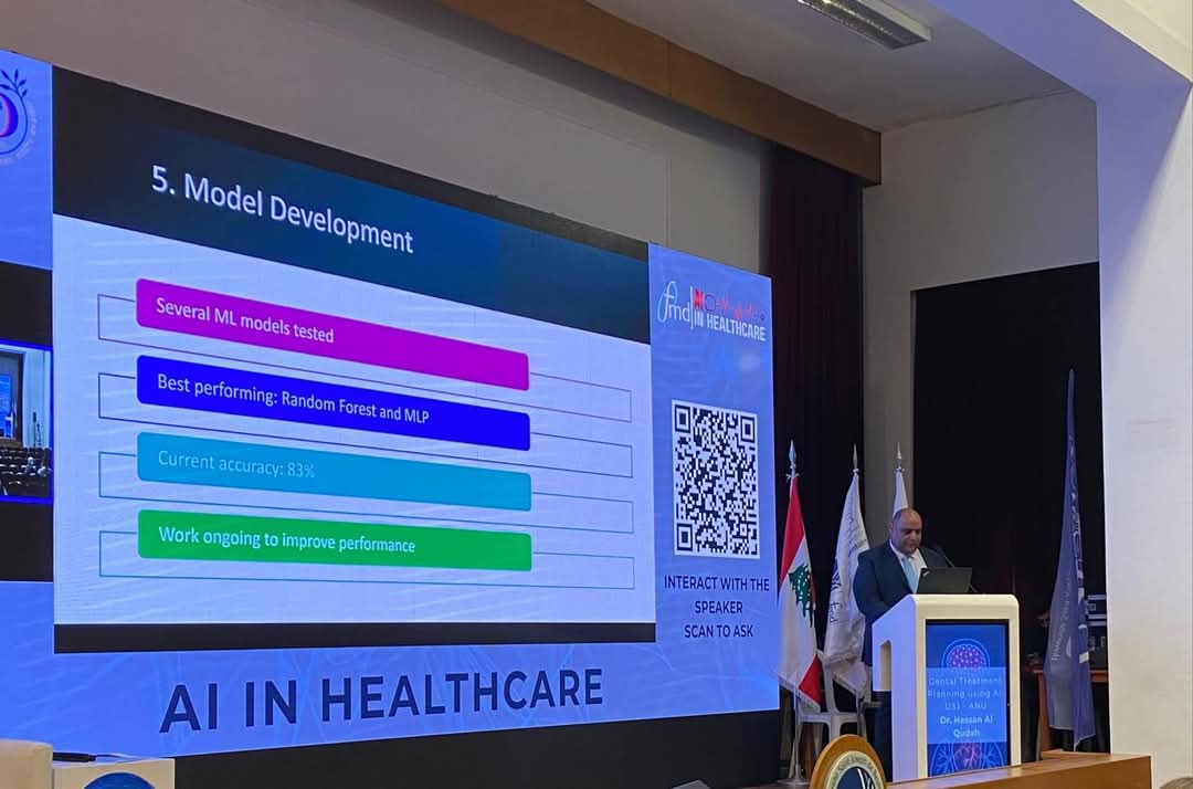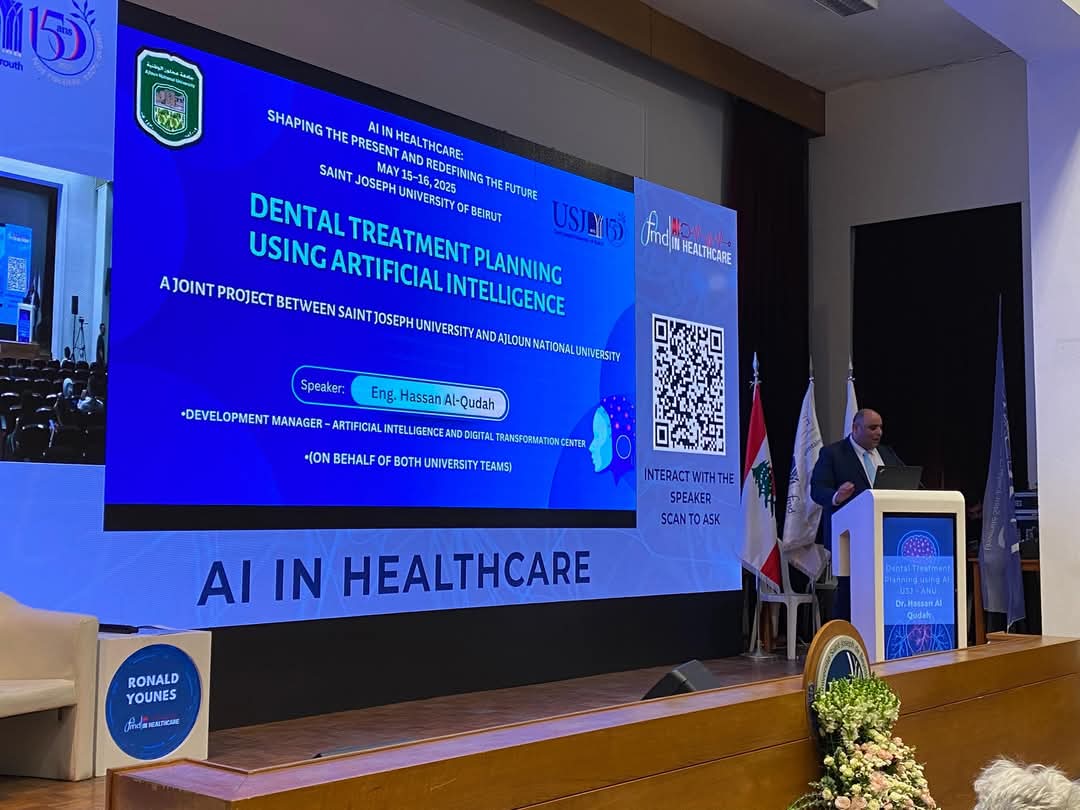 في إطار سعيها المستمر لتعزيز حضورها البحثي والتطبيقي في المجالات التكنولوجية المتقدمة، شاركت جامعة عجلون الوطنية في مؤتمر “الذكاء الاصطناعي في الرعاية الصحية: تشكيل الحاضر وإعادة تعريف المستقبل – AI in Healthcare: Shaping the Present and Redefining the Future”، الذي نظمته جامعة القديس يوسف في بيروت خلال يومي 15 و16 مايو 2025، من خلال تقديم مشروع بحثي مشترك في مجال الذكاء الاصطناعي وطب الأسنان.