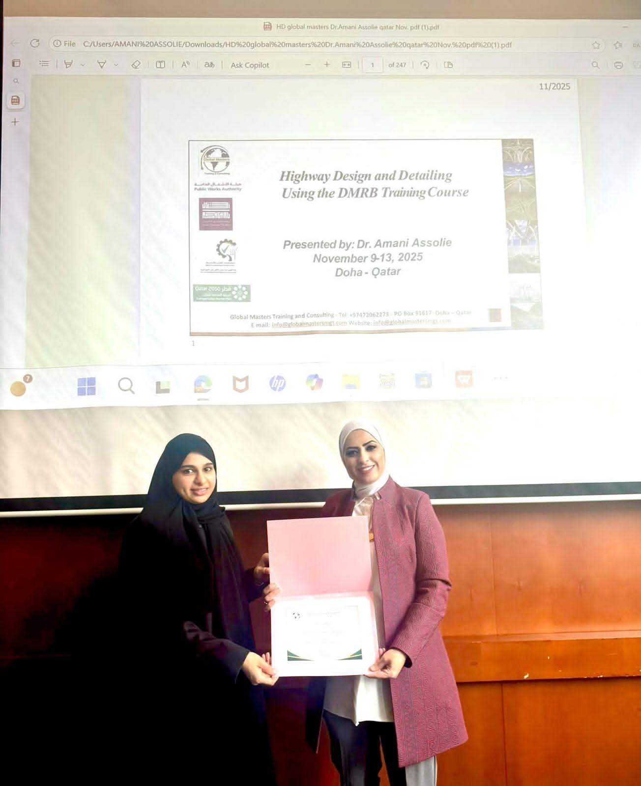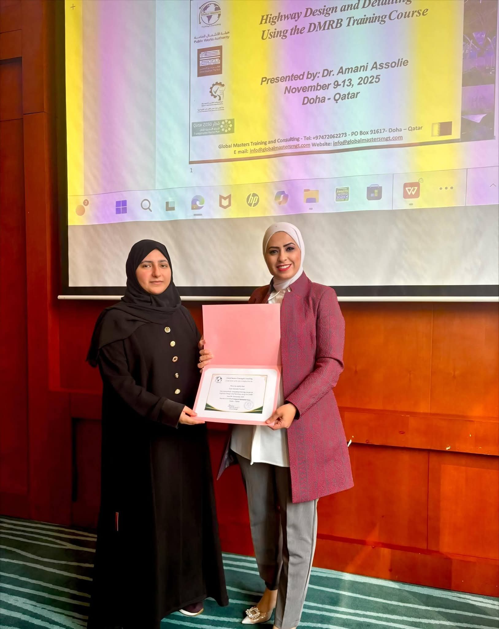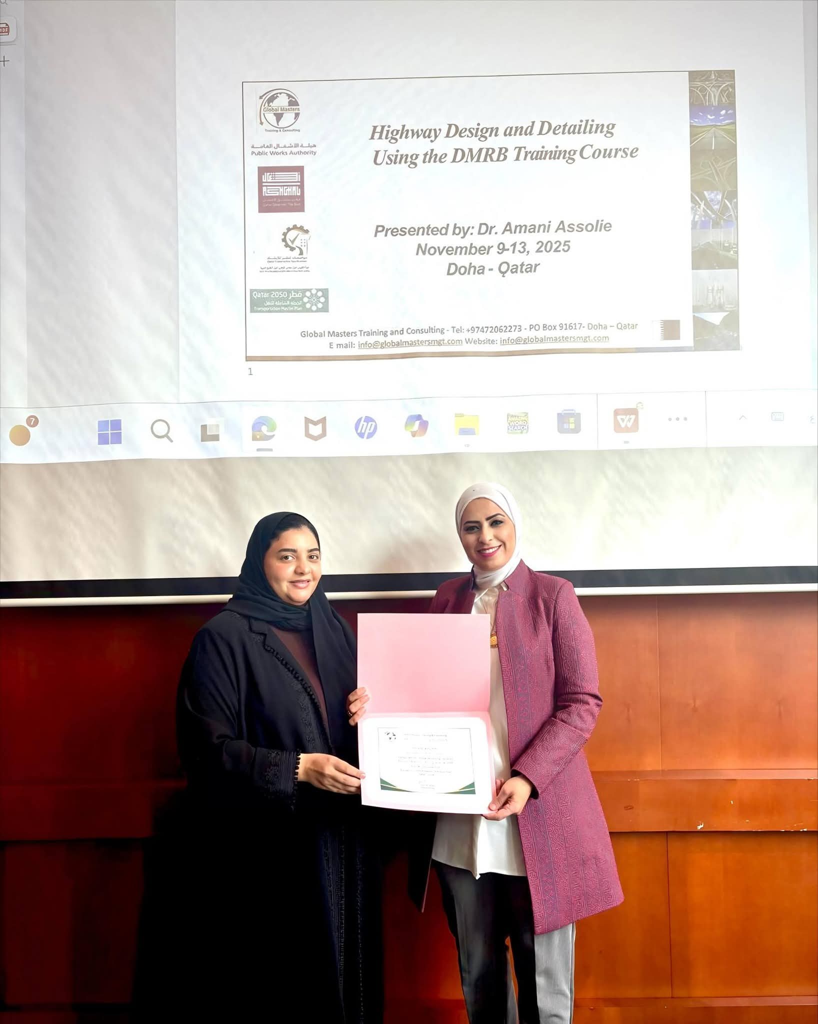 وشهدت الورشة حضورًا واسعًا ضمّ رؤساء الأقسام الهندسية والخبراء المختصين في وزارة الأشغال العامة القطرية، إلى جانب نخبة من المهندسين العاملين في قطاع الطرق والبنية التحتية. وتميز البرنامج بطرح معمّق لمنهجيات تصميم الطرق وفق دليل إدارة الطرق والجسور البريطاني (DMRB) والمعايير القطرية Ashghal Standards، إضافة إلى استعراض أحدث التطبيقات والممارسات الهندسية المستخدمة عالميًا.