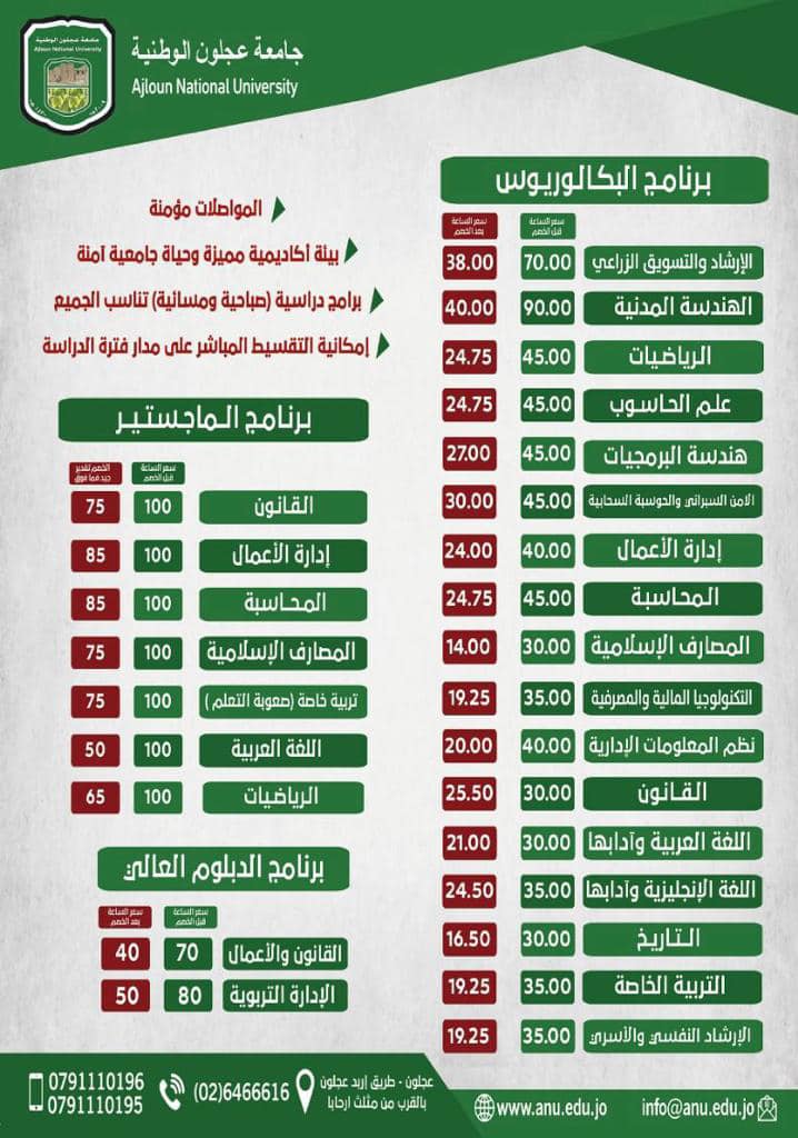 تعلن جامعة عجلون الوطنية عن بدء القبول والتسجيل للفصل الدراسي الصيفي للعام الجامعي 2023/2022 لبرنامج البكالوريوس والدبلوم العالي والماجستير