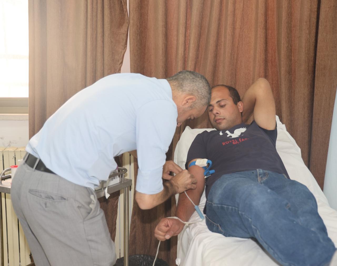 رعى الأستاذ الدكتور فراس الهنانده رئيس الجامعة حملة التبرع بالدم بعنوان (قطرة دم = حياة) التي نظمتها عمادة شؤون الطلبة بالتعاون مع مستشفى الإيمان الحكومي والتي اقيمت في الجامعة (المركز الصحي) بحضور الدكتوره ريم الكناني عميد شؤون الطلبة.