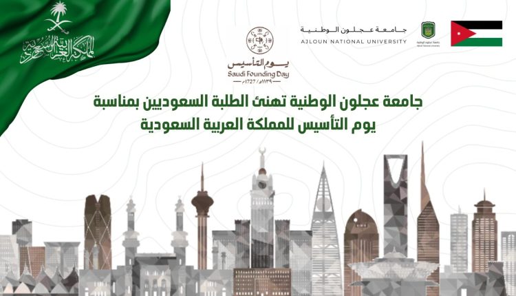 بمناسبة يوم التأسيس في المملكة العربية السعودية، يتقدم رئيس جامعة عجلون الوطنية الأستاذ الدكتور فراس الهناندة، باسمه واسم الهيئتين التدريسية والإدارية وطلبة الجامعة، بأسمى آيات التهنئة والتبريك إلى الطلبة السعوديين الدارسين في الجامعة، وإلى قيادة وشعب المملكة الشقيقة.