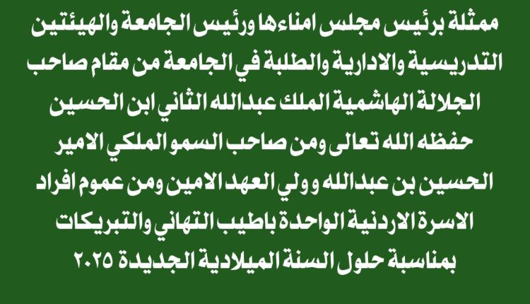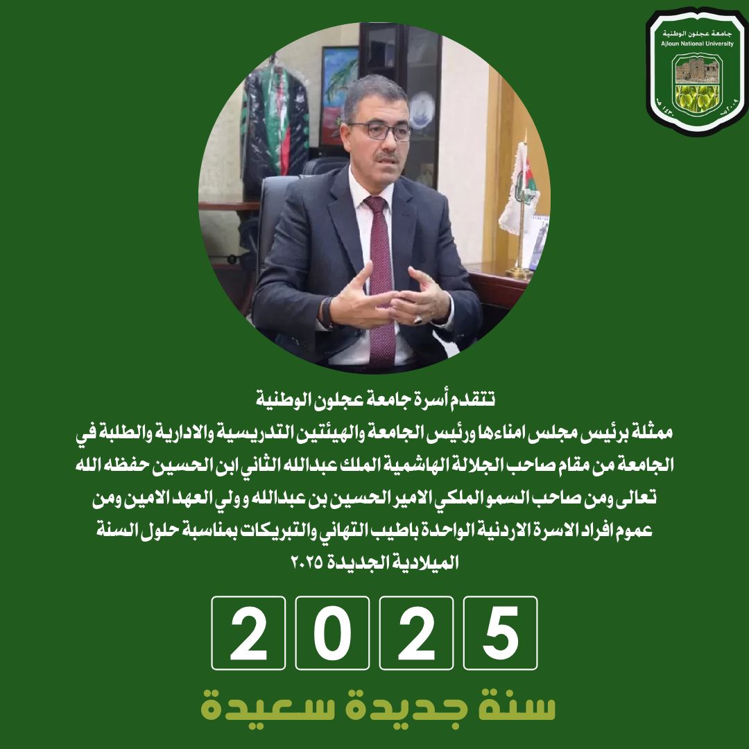 جامعة عجلون الوطنية تهنىء بمناسبة حلول العام الجديد ( 2025)أخبار جامعة عجلون الوطنيةأخبار عجلونية آخر تحديث يناير 5, 2025 =أكمل القراءة شارك