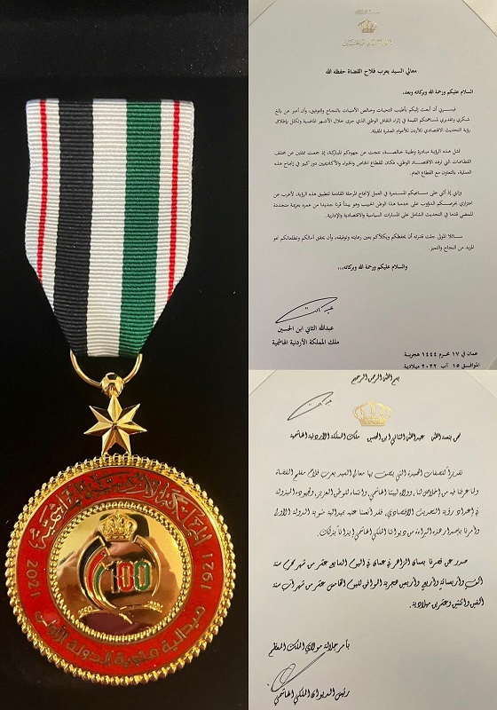 جلالة الملك يكرم المهندس يعرب القضاه بميدالية مئوية الدولة الأولى