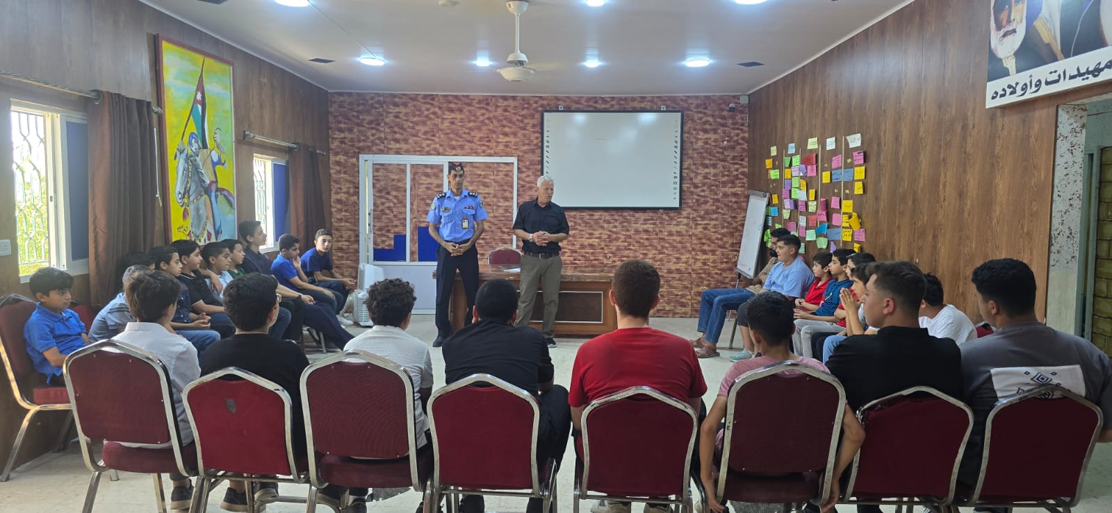 نظم مركز شباب الوسطية اليوم الاحد وضمن خطة نشاطات المركز لشهر تموز ، ندوة توعوية بعنوان ” السلامة المرورية ” بالتعاون مع قسم الشرطة المجتمعية في مركز أمن الوسطية بمشاركة 25 مشاركا.