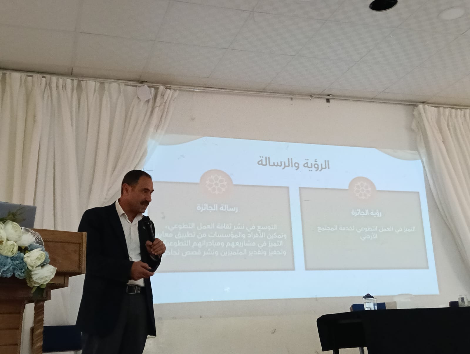 تحدث أبو زيد عن رؤية الجائزة ورسالتها في التميز بالعمل التطوعي لخدمة المجتمع الأردني، وتوسيع ثقافته، وتمكين الأفراد والمؤسسات من تطبيق معايير التميز في مبادراتهم، وتحفيز المتطوعين وتقدير جهودهم.