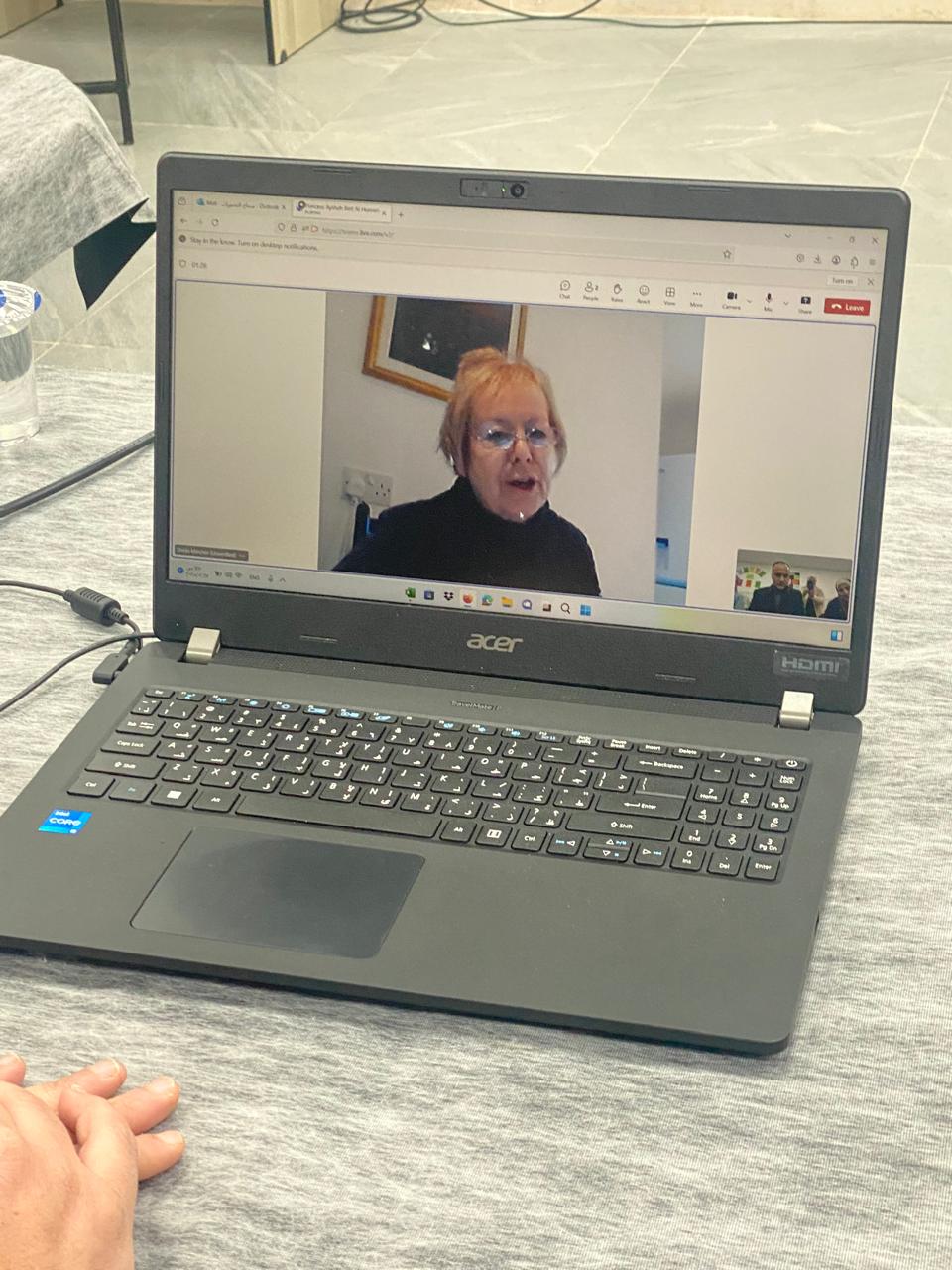 حيث التقت المدققة الخارجية شيلا بمعلمات التخصص ميساء الجبالي ونسرين السيوف ورهف الحمزات عن بعد بحضور المشرفة التربوية مرام القادري ومديرة المدرسة إيمان الصمادي والمترجم محمد أبو الرب وكلٌّ من ضابط الجودة سماح النصيرات وضابط الامتحانات حنان الصمادي.