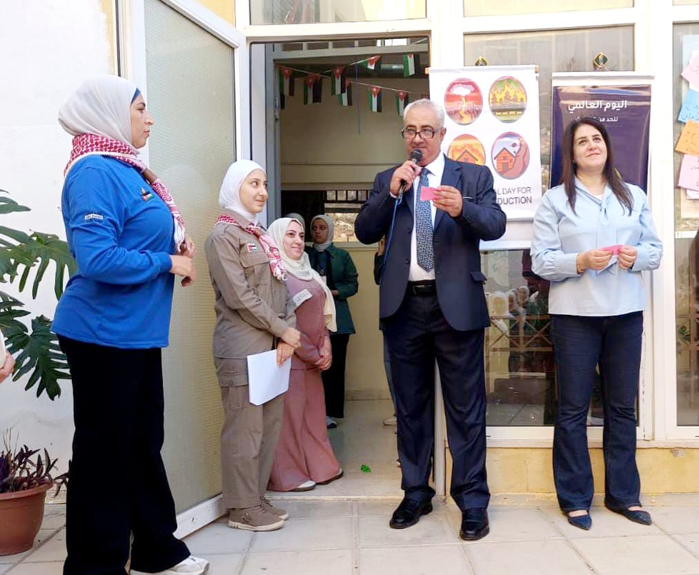 رعى مدير التربية والتعليم لمحافظة عجلون الأستاذ خلدون جويعد الاحتفال الذي نظمته فرقة مرشدات مدرسة راسون الثانوية للبنات بمناسبة اليوم العالمي للحد من الكوارث وذلك خلال فعاليات الطابور الصباحي بحضور رئيس قسم النشاطات التربوية سامر القضاة ورئيس قسم الإرشاد التربوي عمار خطاطبة وضابط ارتباط المخاطر غدير الربضي، ومن مديرية الدفاع المدني الملازم أول أحمد مصاروة ومسؤول الشرطة المجتمعية الملازم أول علاء القضاة.