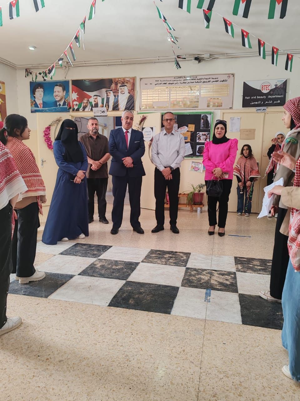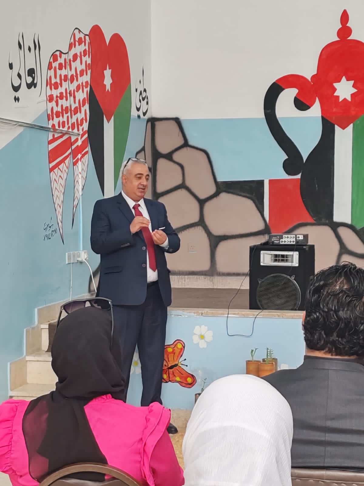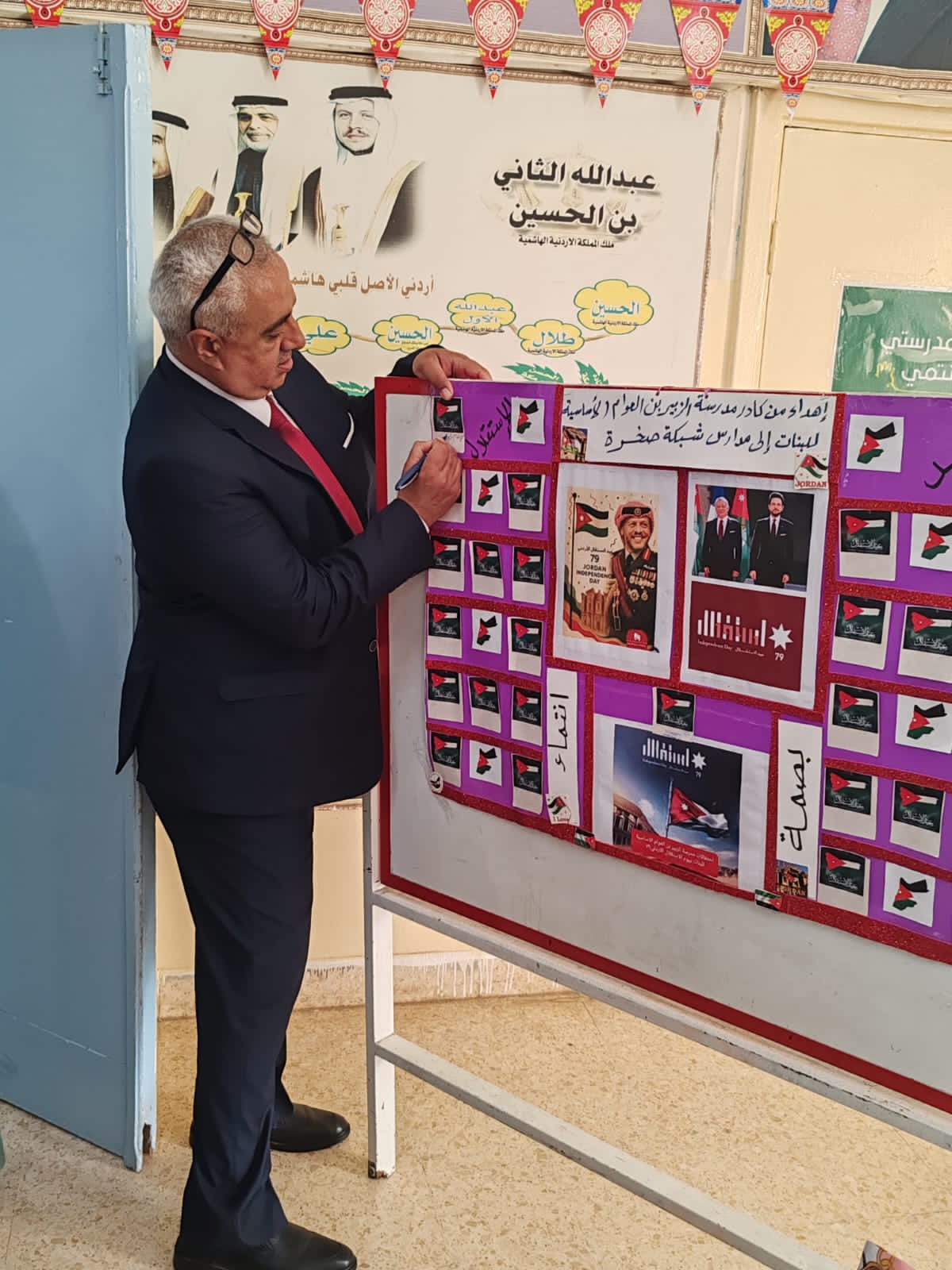 وفي كلمة ألقاها، أثنى مدير التربية والتعليم على الجهود المبذولة والتشاركية في تنظيم المعرض مؤكدا فاعلية هذه المبادرة التي انطلقت لتحقيق رؤية جلالة الملك عبدالله الثاني ابن الحسين حفظه الله ورعاه في تحسين البيئة التعليمية ودعم وتوجيه إمكانات الطلبة بما ينعكس على توفير بيئة مدرسية آمنة صحية وجاذبة، وترتكز أهميتها بما يحققه من أهداف واضحة في خلق بيئة تربوية وتعليمية محفزة للطلبة تنمي مواهبهم وتطورها وترسخ لديهم سلوكيات وقيم تتمثل بتعزيز العمل بروح الفريق والانتماء والمسؤولية تجاه المدرسة وتشجعهم على العمل التطوعي.