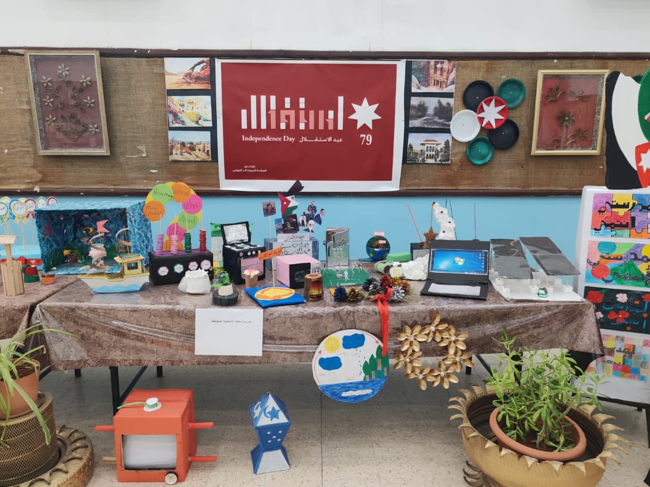 واشتمل المعرض على فعاليات متنوعة من قصائد شعرية وطنية بمناسبة عيد الاستقلال التاسع والسبعين ودبكات شعبية ونشيد لمدرستي أنتمي.