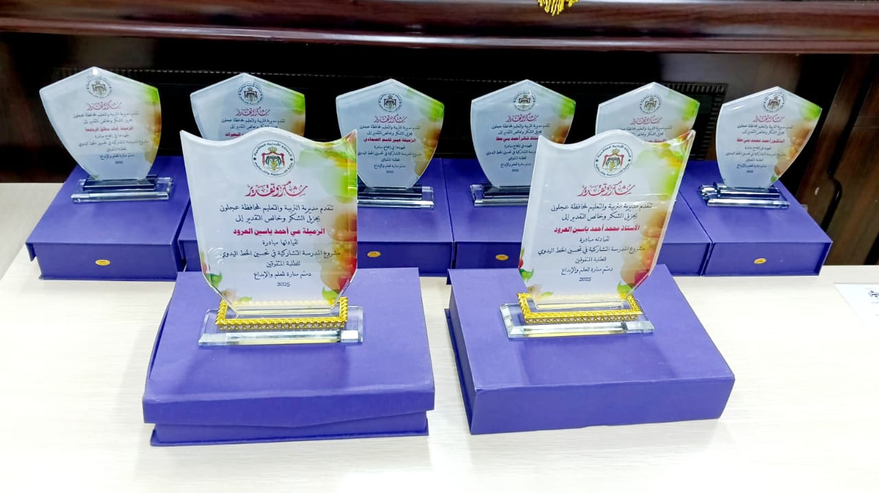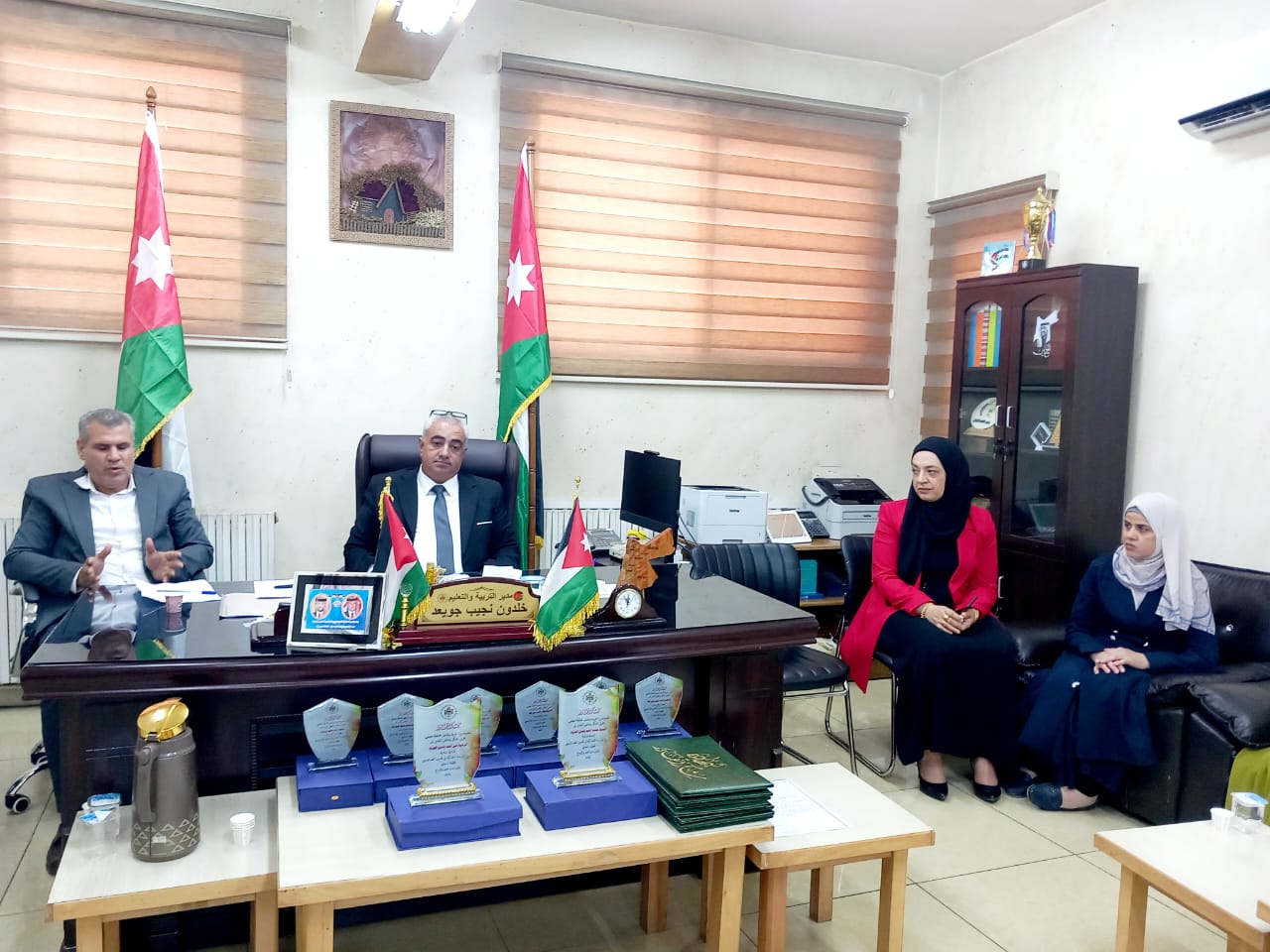 كرّم مدير التربية والتعليم لمحافظة عجلون الأستاذ خلدون جويعد أعضاء مبادرة(مشروع المدرسة التشاركية في الخط اليدوي للطلبة المتفوقين) التي أطلقها الأستاذ محمد العرود من مدرسة أوصرة الثانوية بنين بالتشارك مع الأستاذة مي العرود من مدرسة أوصرة الثانوية المختلطة بحضور رئيس قسم الإشراف التربوي الدكتور منصور العرود ورئيس قسم الرقابة الداخلية الدكتور أمجد القضاة ومشرفي اللغة العربية والرياضيات.