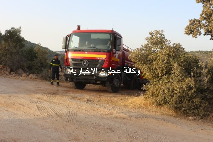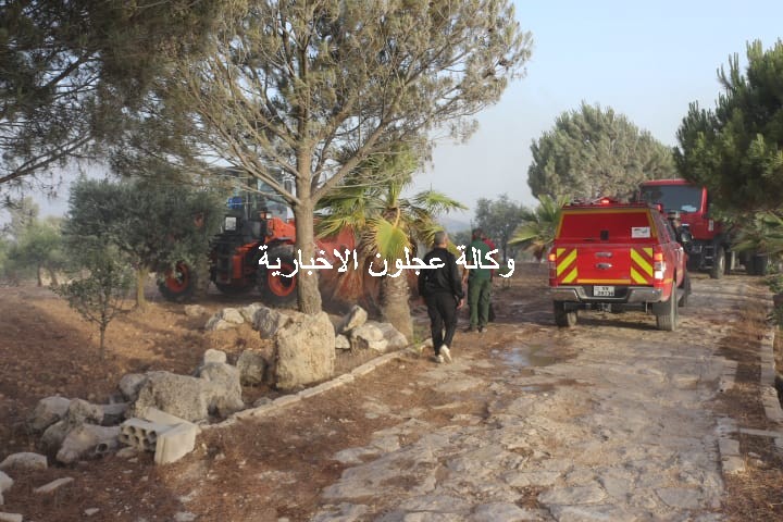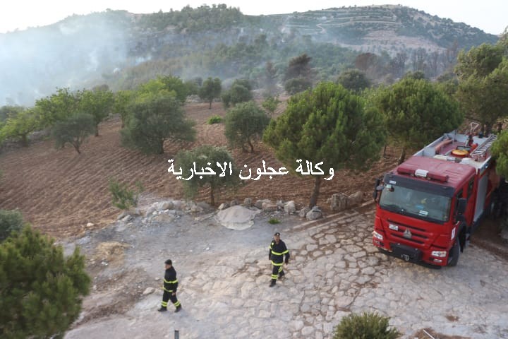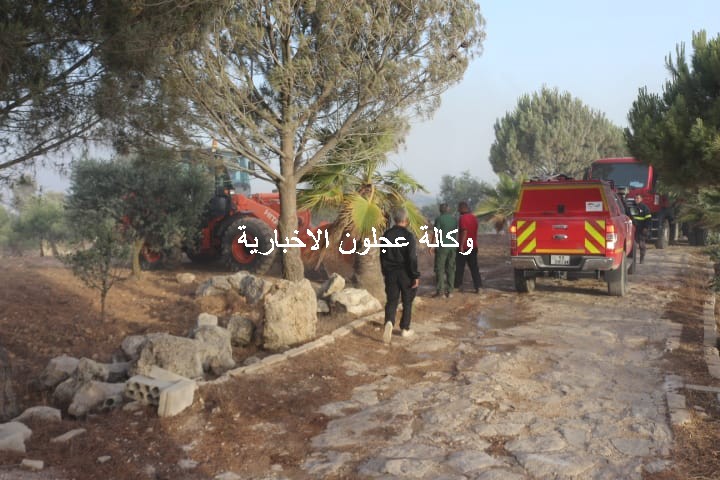 ويتابع متصرف لواء كفرنجة ومدير شرطة عجلون العميد وصفي العزام ميدانيا عملية إطفاء الحرائق