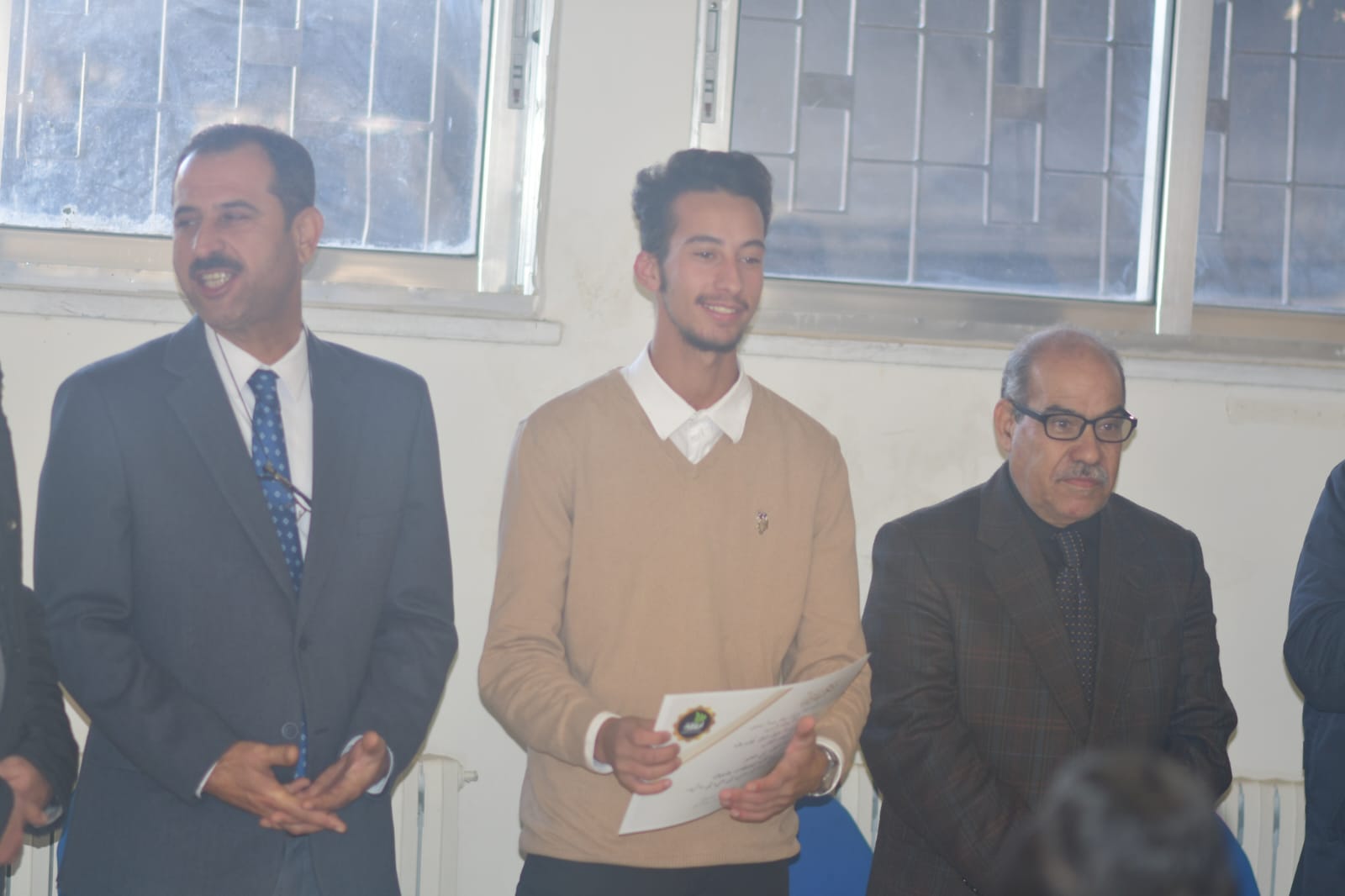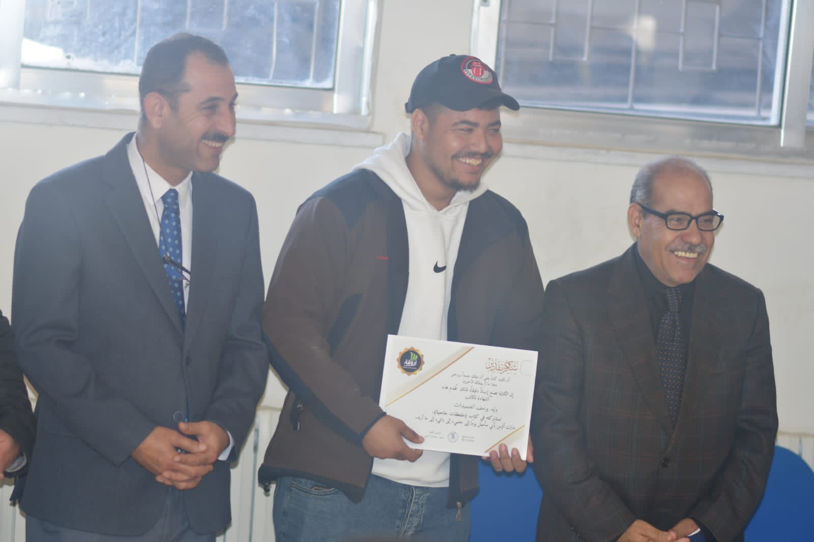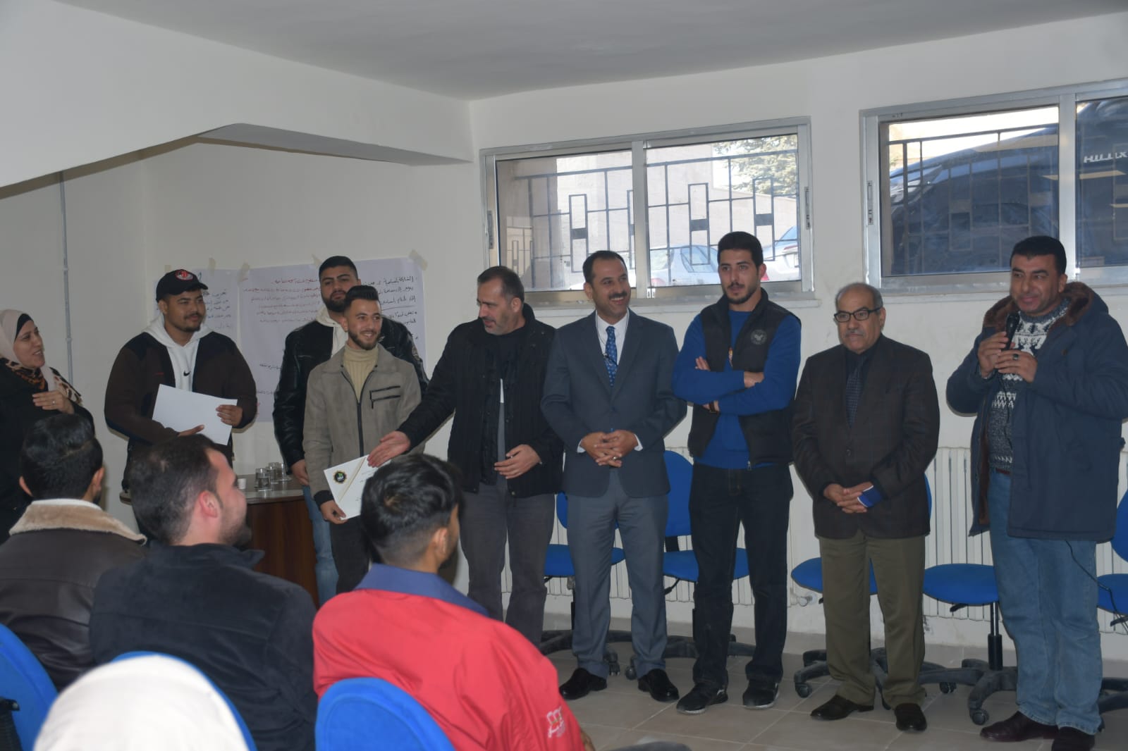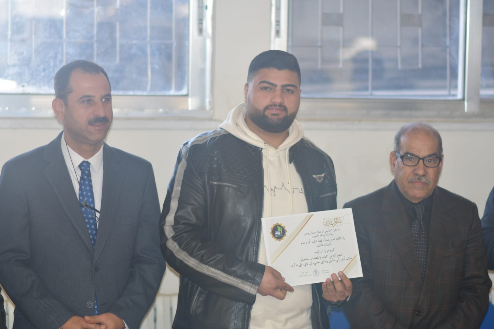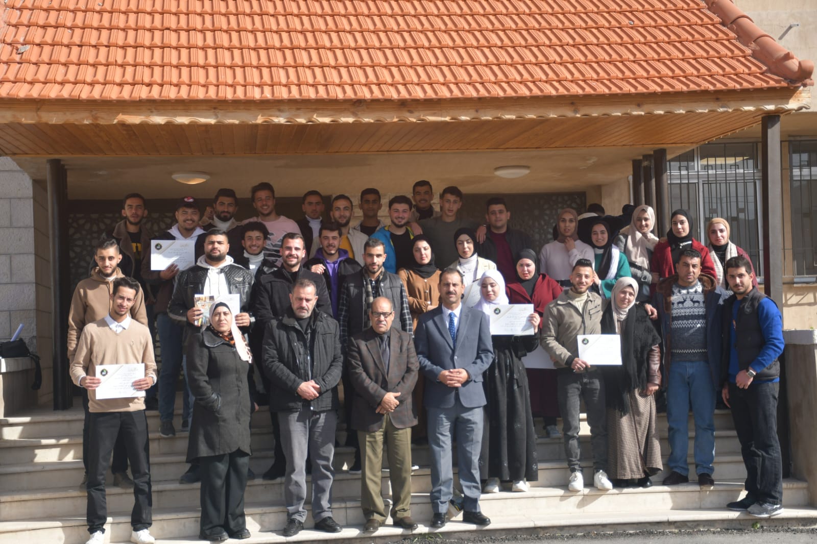 وفي نهاية الحفل سلم الدكتور أحمد العرود الشهادات التقديرية للطلبة المشاركين في تنظيم هذه المبادرة