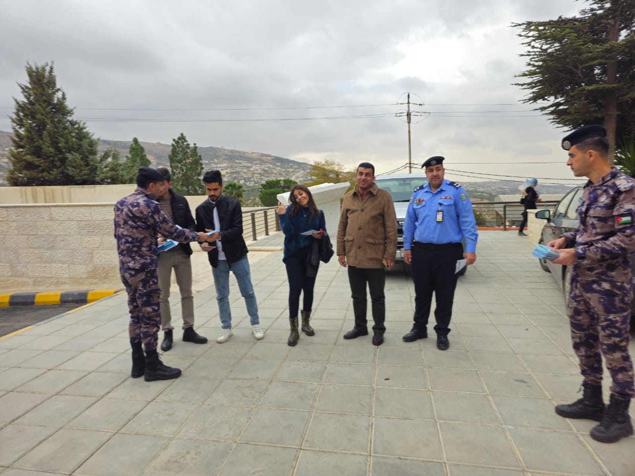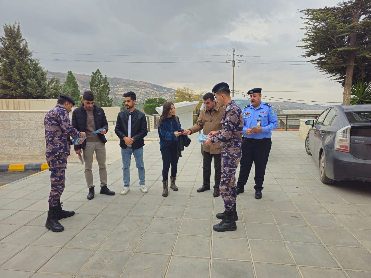 لتعزيز الوعي المروري للطلبة للحد من حوادث السير وتعزيز المشاركة المجتمعية باشرت مديرية الأمن العام/ إدارة السير في عجلون حملتها المرورية الشتوية اليوم في كلية عجلون الجامعية ومع تساقط أمطار الخير بعمل عدد من الجلسات التوعوية ضمن تجمعات طلابية حول أهم الاجراءات الواجب اتخاذها للحد من حوادث السير والتأكد من صلاحية المركبات للمسير الآمن خلال فصل الشتاء.