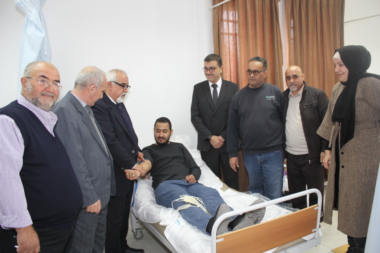 رعى رئيس جامعة عجلون الوطنية الأستاذ الدكتور فراس احمد الهنانده الحملة التي نظمتها الجامعة – عمادة شؤون الطلبة للتبرع بالدم بالتعاون مع الوحدة الصحية في الجامعة وبنك الدم فرع اقليم الشمال.