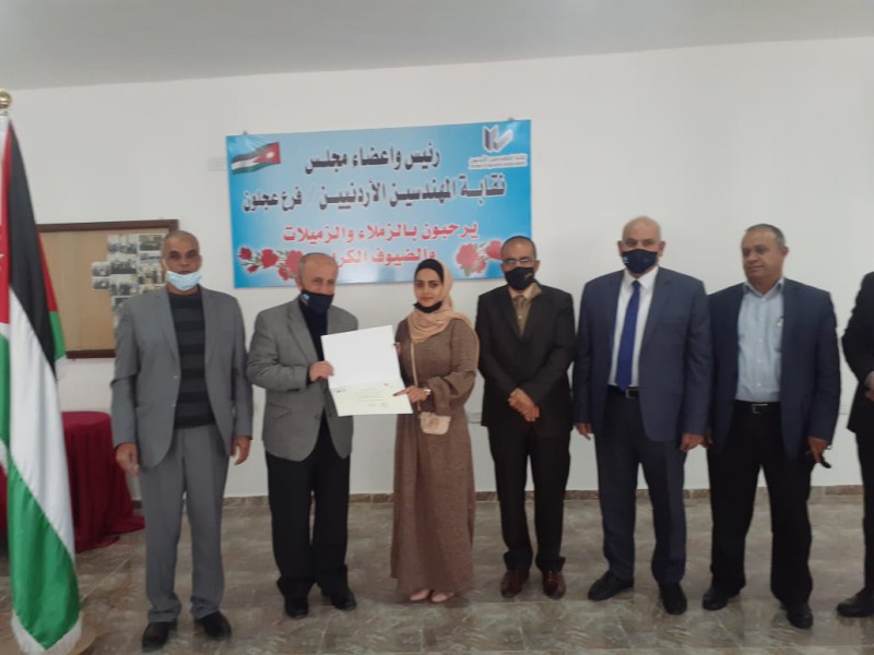 وقال الدكتور محمد نور الصمادي رئيس مجلس أمناء جامعة عجلون الوطنية الذي رعى حفل تسليم الشهادات ” أننا نضع إمكانيات جامعة عجلون الوطنية في خدمة نقابة المهندسين الأردنيين “.
