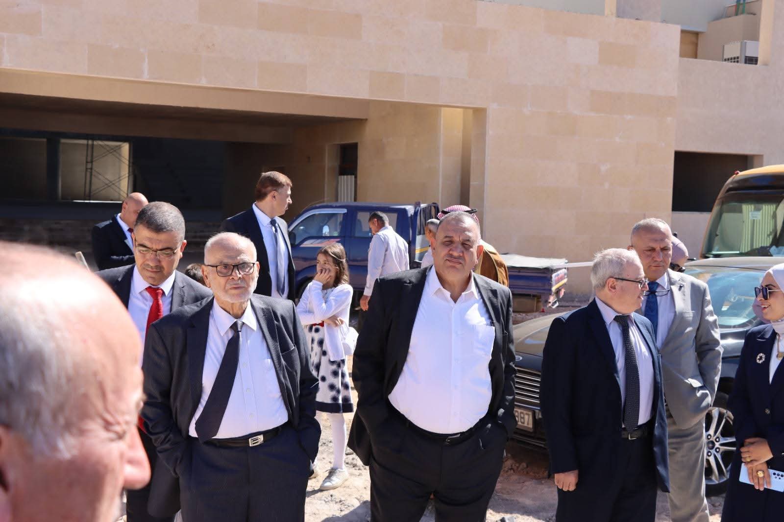 رؤساء وأعضاء مجالس الحاكمية ورئيس جامعة عجلون الوطنية يتفقدون مشروع الصالة الرياضية الذي شارف على الانتهاء