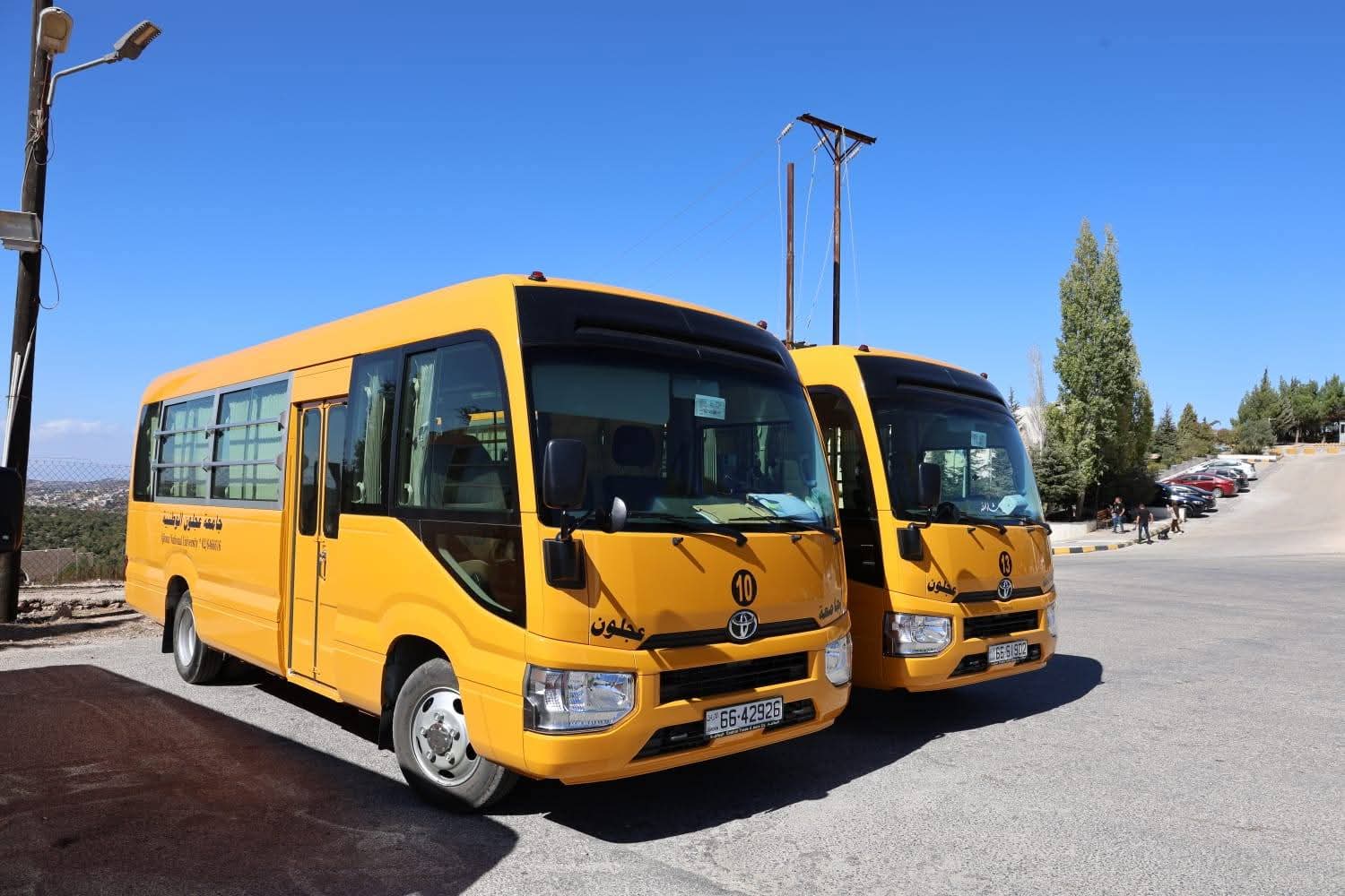 وتضم الدفعة عشرة باصات حديثة موديل 2026، بسعة 23 راكبًا لكل حافلة، وبتكلفة إجمالية بلغت نحو 600 ألف دينار أردني، حيث جُهزت وفق أعلى معايير الجودة والسلامة والراحة، لتأمين نقل آمن ومريح للطلبة من وإلى الجامعة، ليصل العدد إلى أكثر من 40 باص مخصصة لنقل الطلاب من مختلف محافظات المملكة.